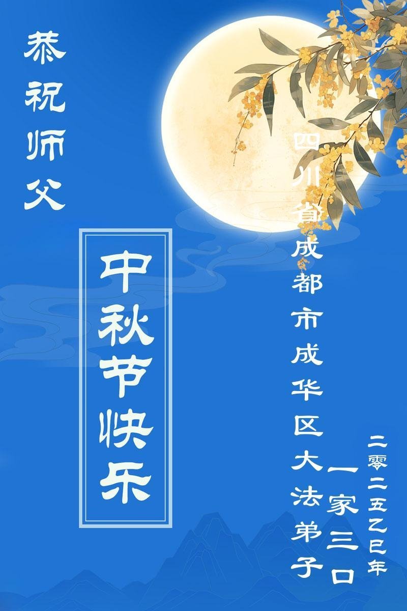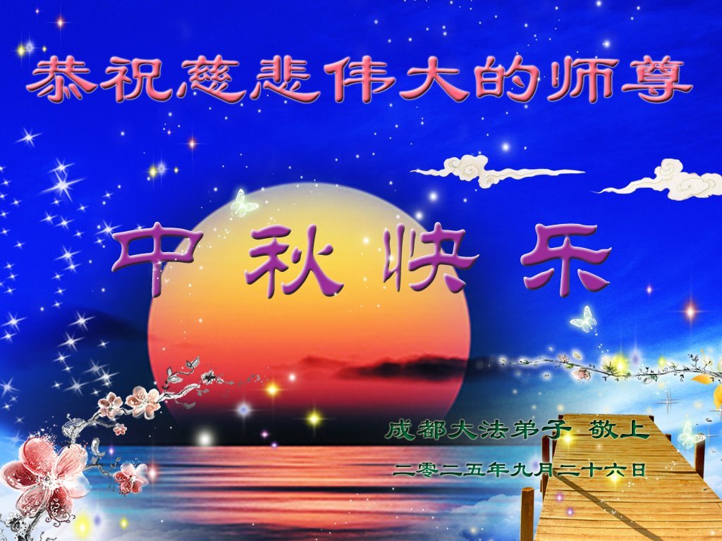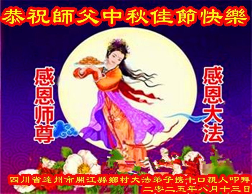 值此二零二五年中秋佳節來臨之際,恭祝慈悲偉大的師尊中秋節快樂!感恩師尊對弟子和弟子家人親人的慈悲救度和保護幫助!我們努力做好學法煉功發正念講真相救人三件事,勇猛精進,真修實修,不辜負慈悲偉大師尊的慈悲苦度,完成好使命!