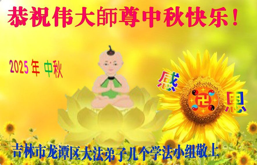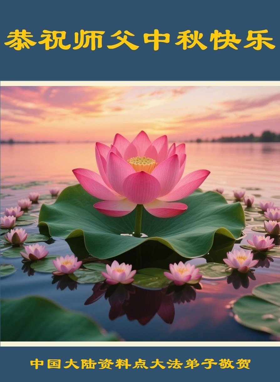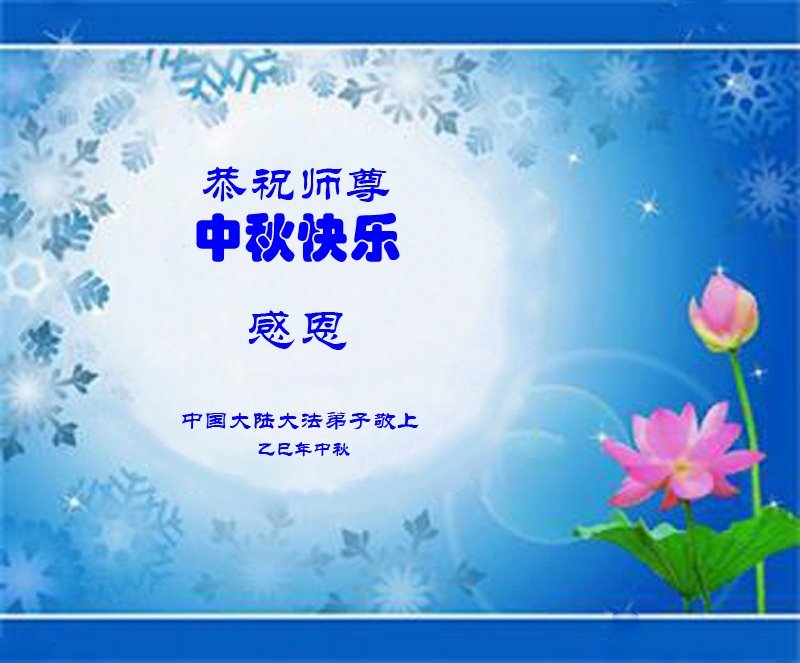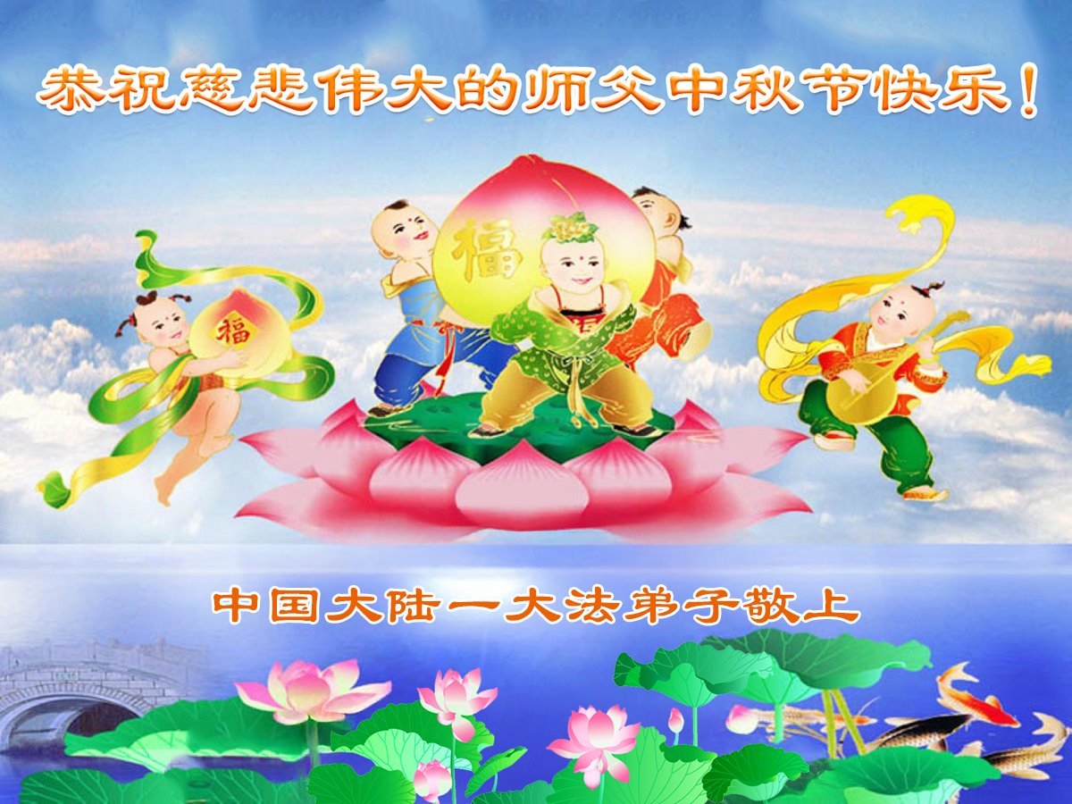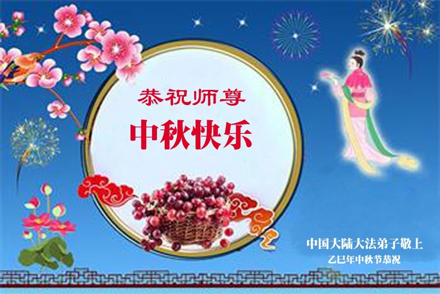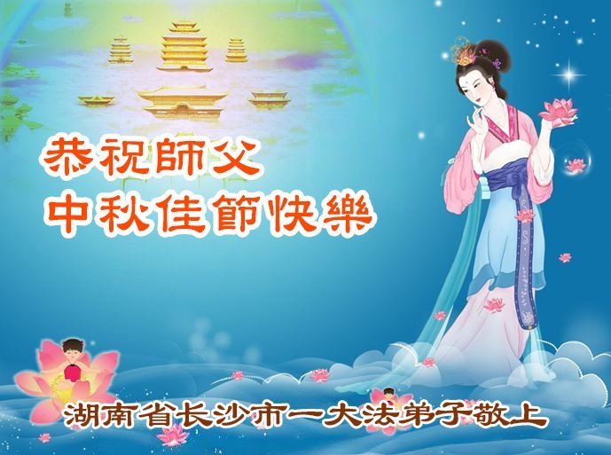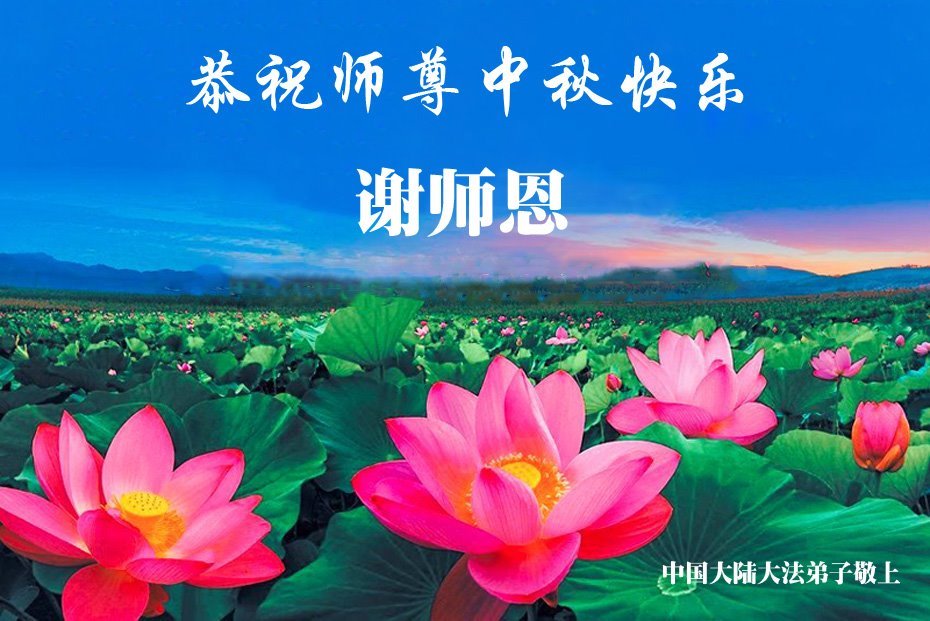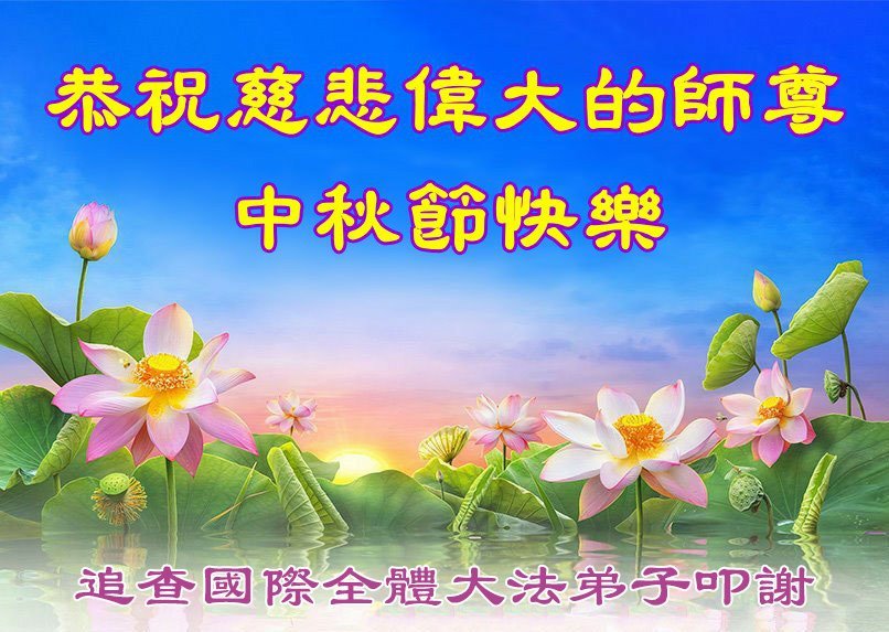 感恩師父慈悲苦度!弟子一定努力做好三件事,兌現誓約!並代表明白真相的家人恭祝師父中秋快樂!