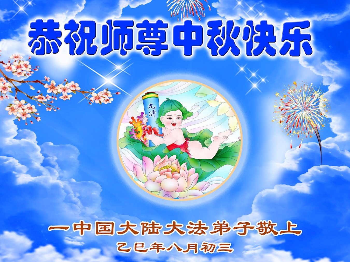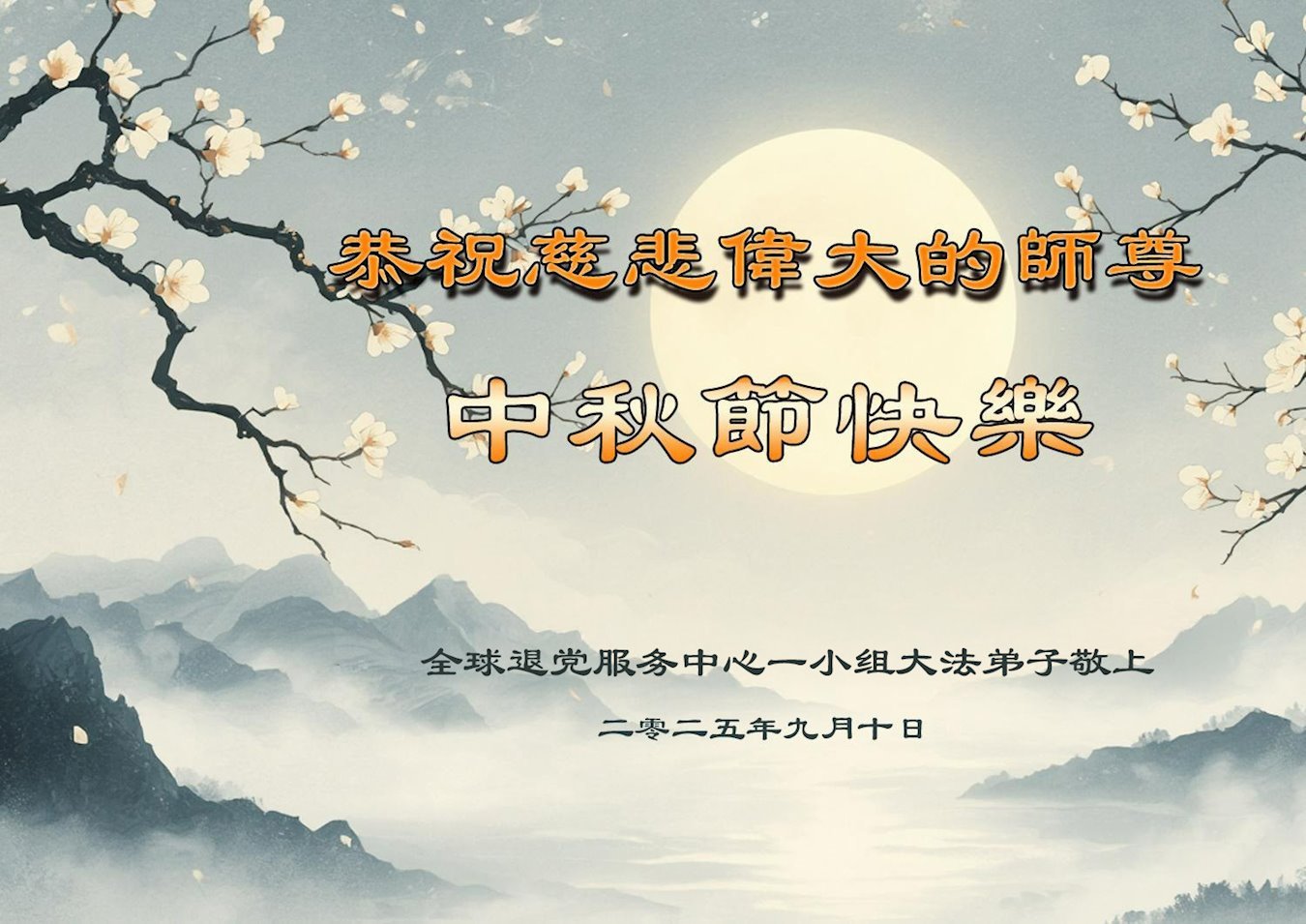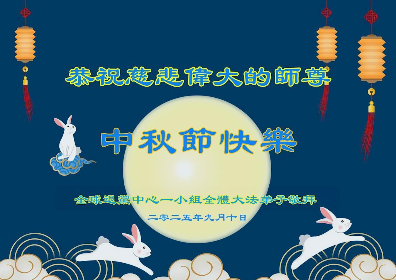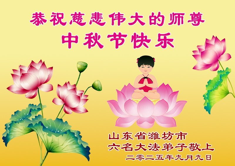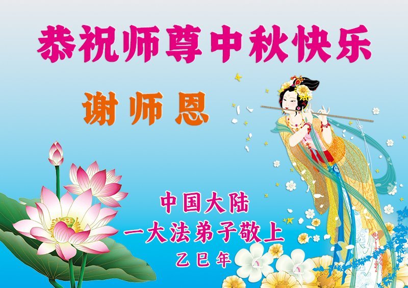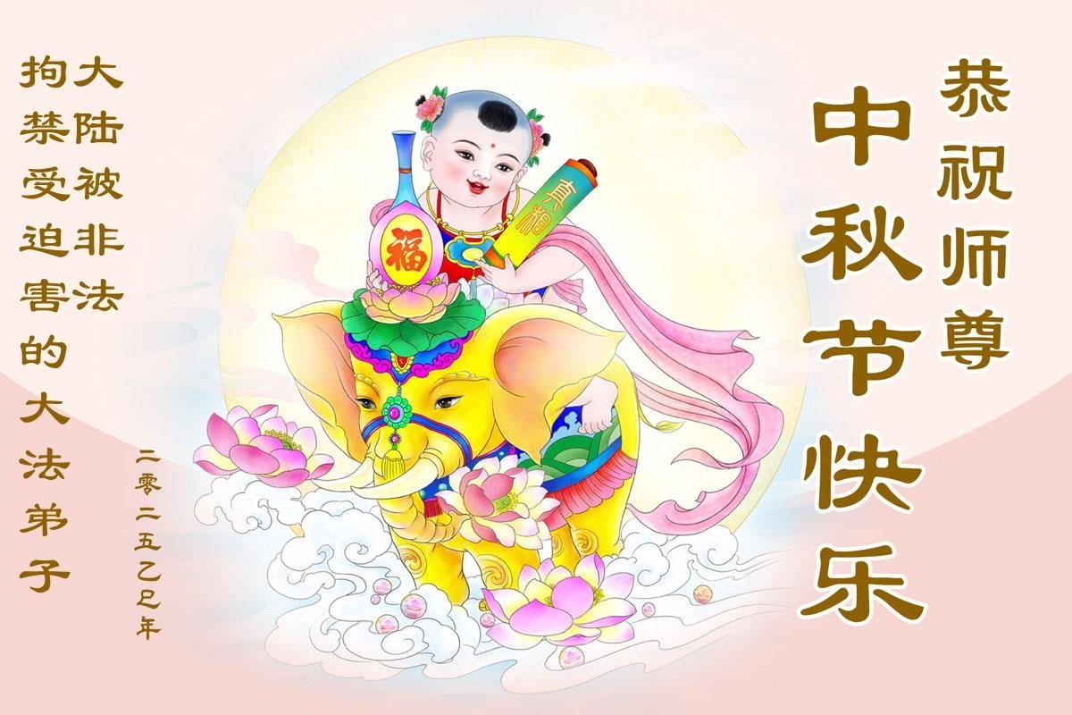 感恩師父慈悲苦度!弟子一定努力做好三件事,兌現誓約!並代表明白真相的家人恭祝師父中秋快樂!