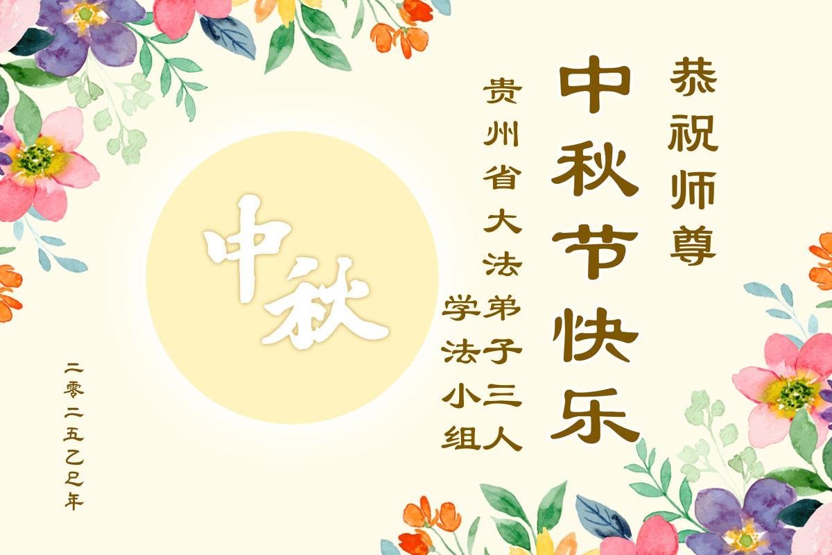 貴州省大法弟子三人學法小組大法弟子恭祝師父中秋快樂!
