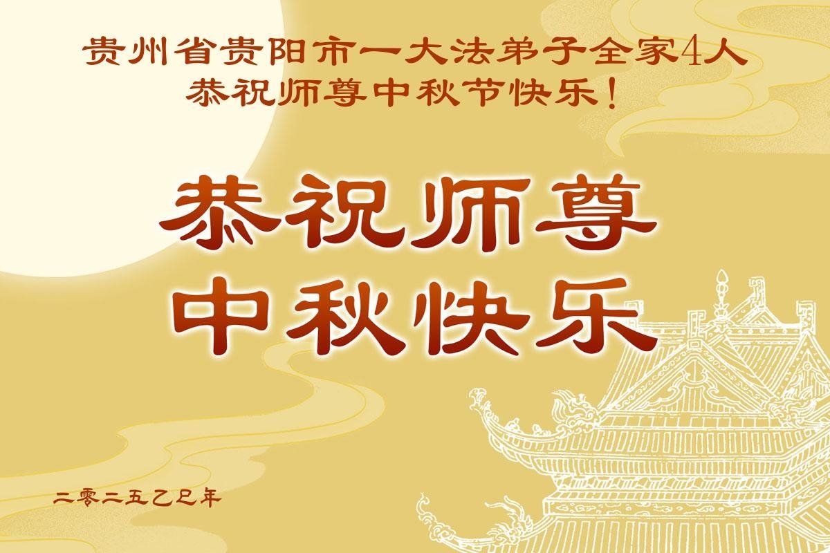 貴州省貴陽市一大法弟子全家4人恭祝師尊中秋節快樂!