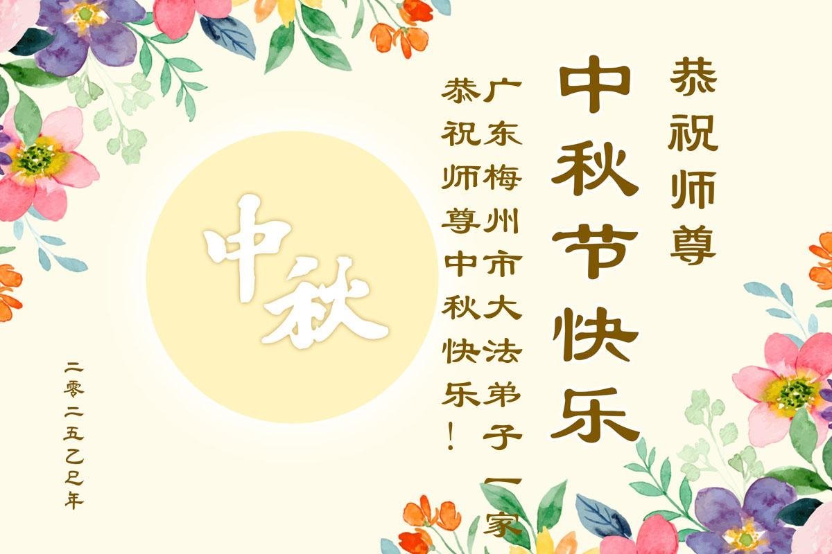 廣東梅州市大法弟子一家人恭祝師尊中秋快樂!