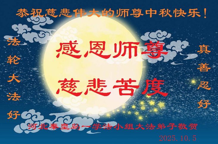恭祝師尊中秋節快樂!師尊好!感謝師尊慈悲苦度我們!弟子堅定修煉,做好三件事!