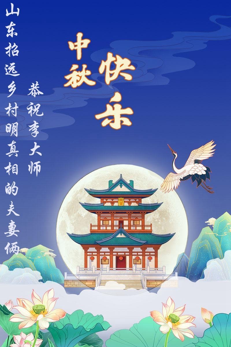 山東招遠鄉村明真相的夫妻倆恭祝李大師中秋節快樂!