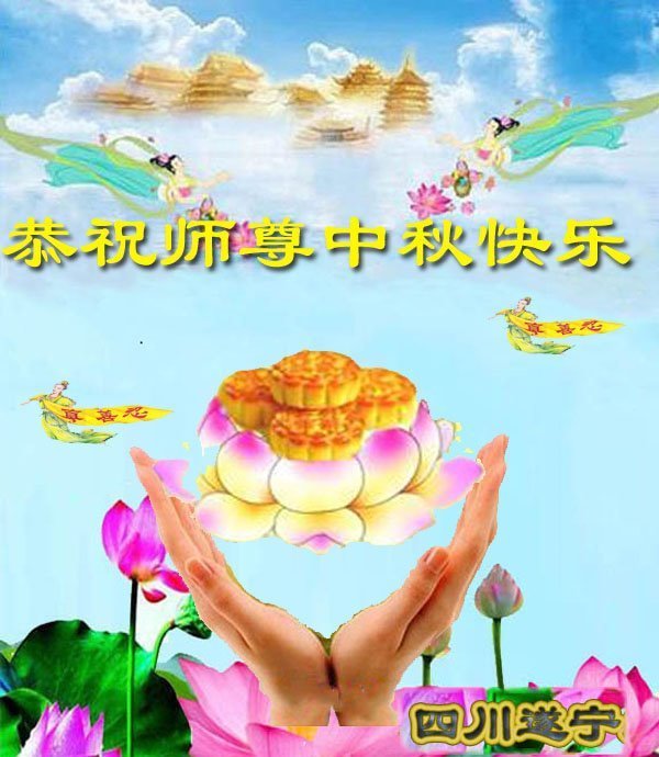 恭祝大法師父中秋節快樂!感恩李大師洪傳法輪功,「法輪大法好」口耳相傳誦,「真善忍好」人人不離口,誠念得福報,個個謝師恩。