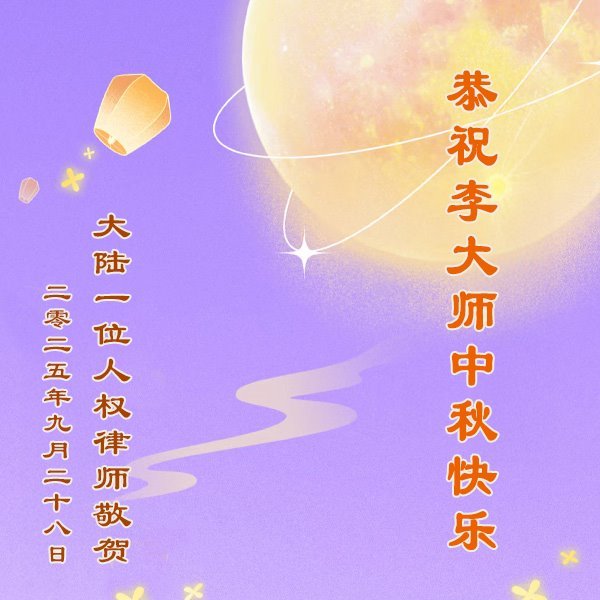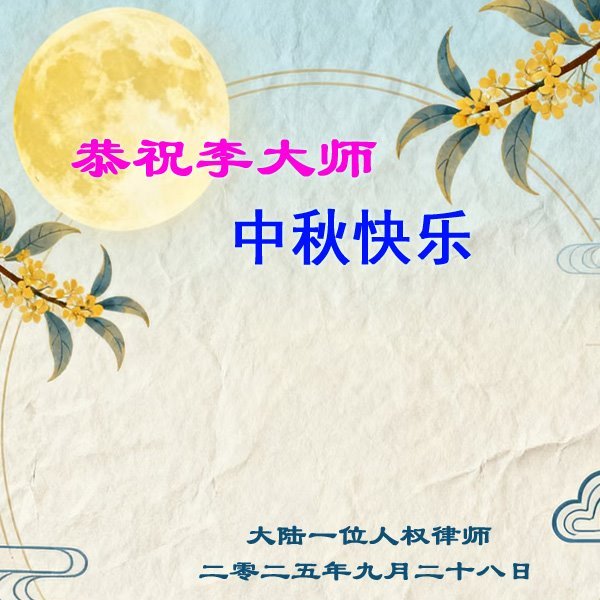 中國大陸一位人權律師恭祝李洪志大師中秋節快樂!