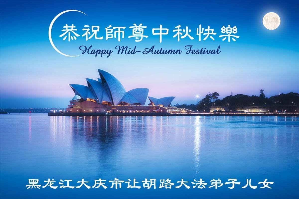 黑龍江省大慶市讓胡路大法弟子一雙兒女恭祝大法師父中秋節快樂!