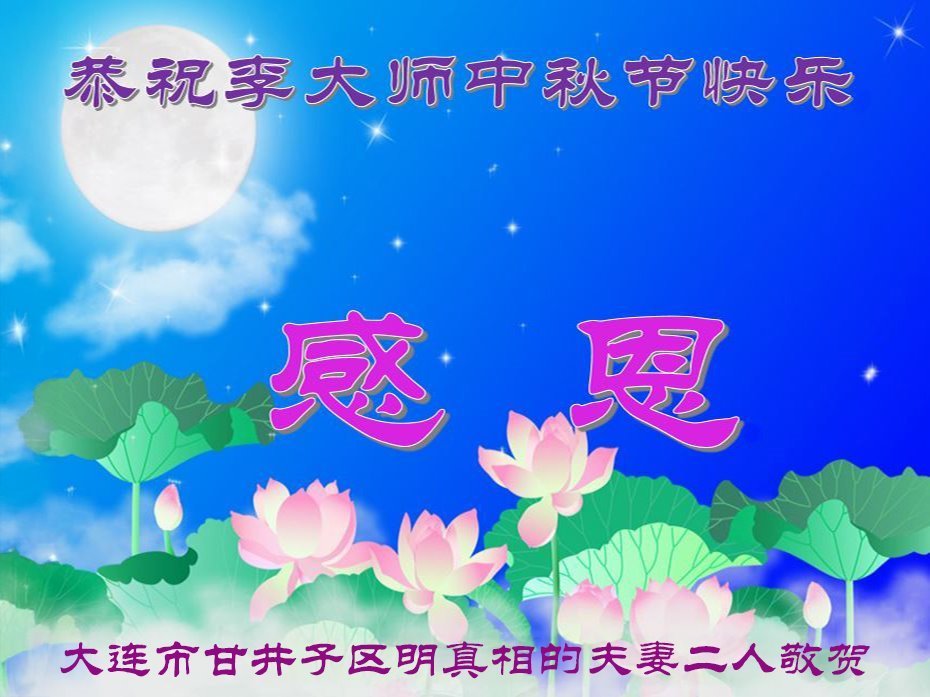 遼寧省大連市甘井子區一明真相的夫妻二人恭祝李大師中秋節快樂!