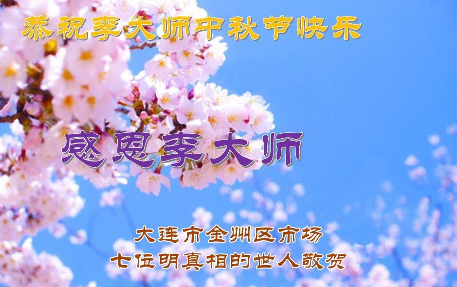 遼寧省大連市金州區一市場上七位明真相的世人恭祝李大師中秋節快樂!