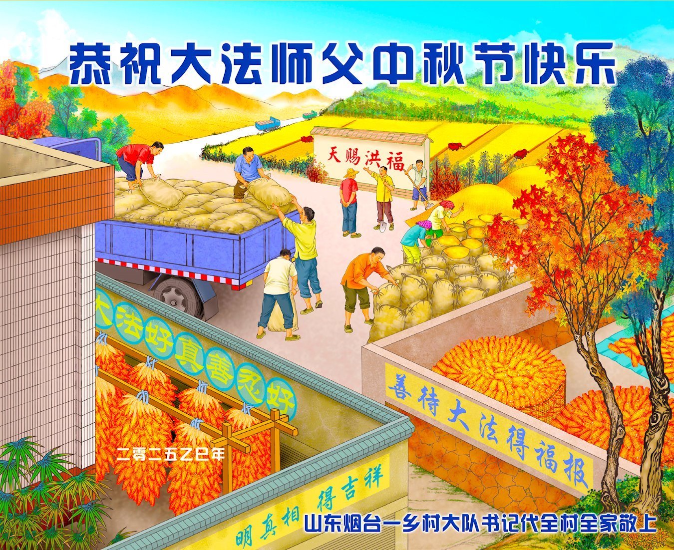 山東省一鄉村大隊書記代表全村及全家恭祝大法師父中秋節快樂!