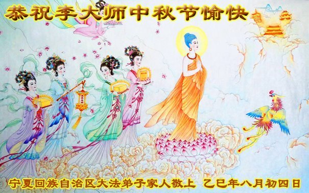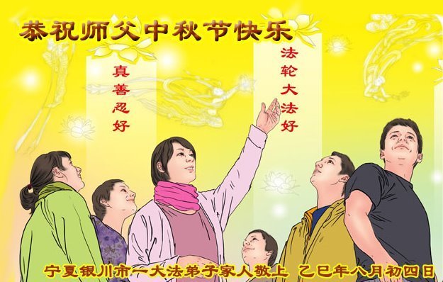 寧夏回族自治區一大法弟子明真相家人及親屬二十八人恭祝大法師父中秋節快樂!