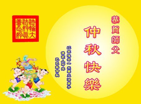 慈悲偉大的師父好!在中秋佳節來臨之際,弟子遙祝在異國他鄉的師父節日快樂!師父您辛苦了!叩拜師父!
