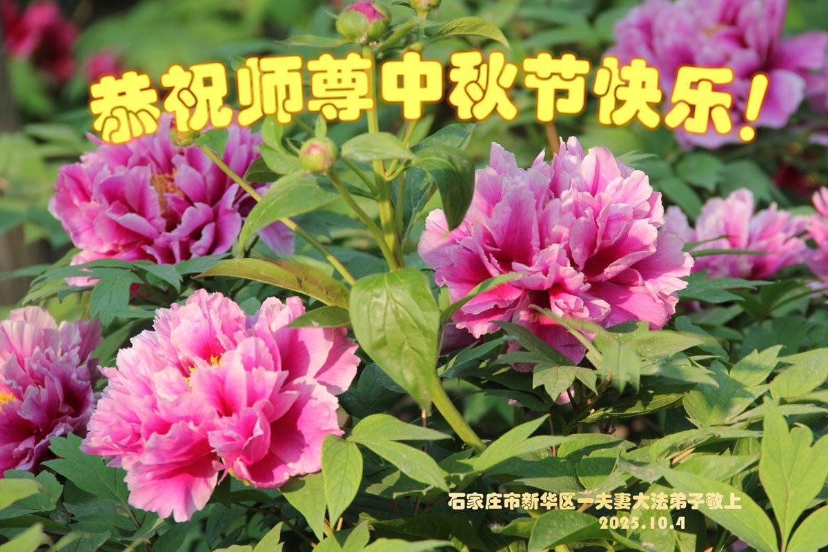 河北廊坊三河市城內四人學法小組大法弟子向慈悲偉大的師父問好,恭祝師尊中秋節快樂!師父您辛苦了!