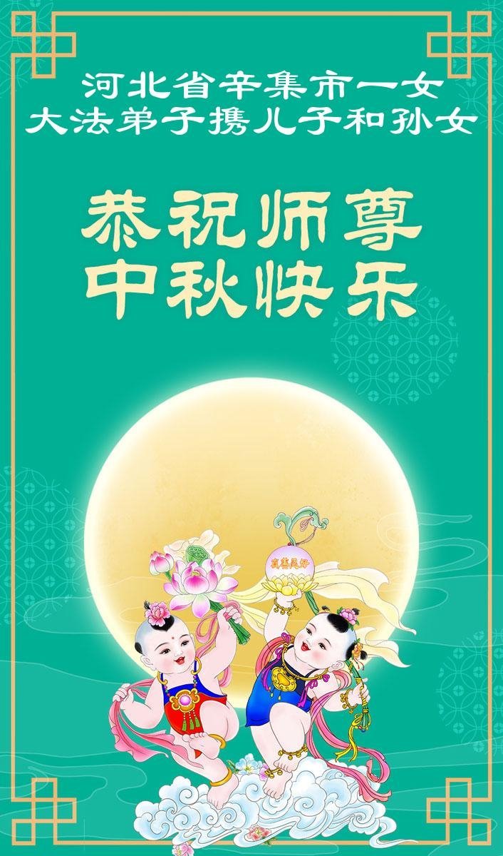 我是河北省辛集市一女大法弟子,在這中秋佳節到來之際,攜兒子孫女恭祝師尊中秋佳節快樂!