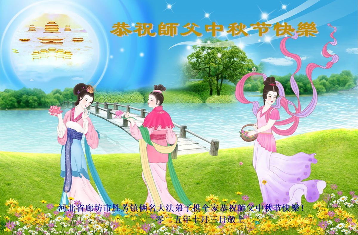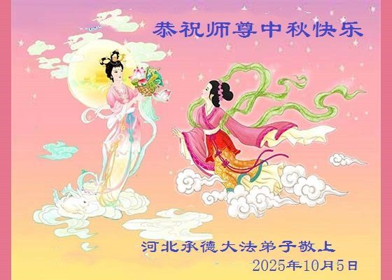 感謝師父一直以來的保護!在以後的日子裏,我希望環境越來越好,盼望師父早日回國。感謝師父從小到大對我的保護與提醒!幫助我學會了很多並讓我健康成長,小弟子今後一定認真學法。在中秋佳節到來之際,弟子希望師父少一份操勞,多一份欣慰。