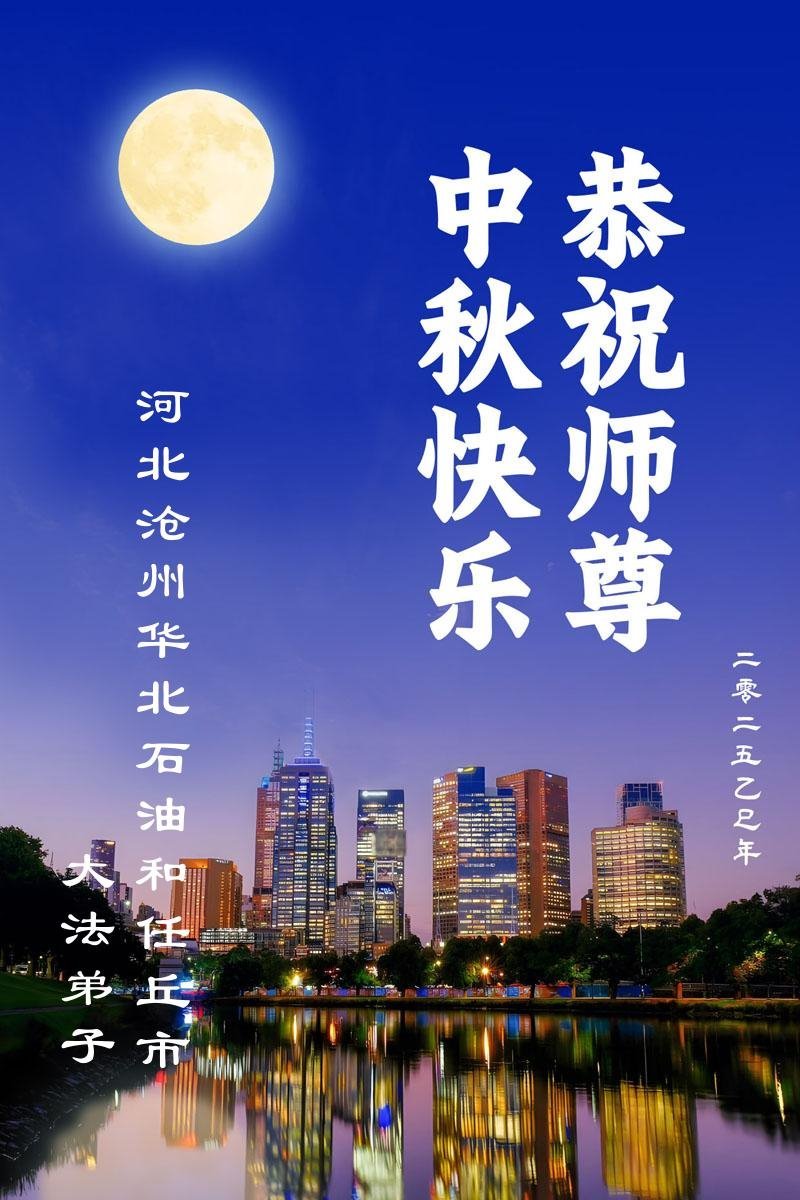 河北省滄州市任丘市和華北油田大法弟子恭祝慈悲偉大的師尊中秋節快樂!