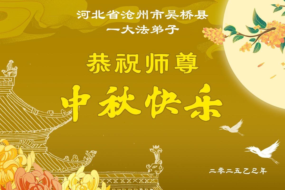 河北省滄州市吳橋縣一學法小組大法弟子恭祝師尊中秋快樂!