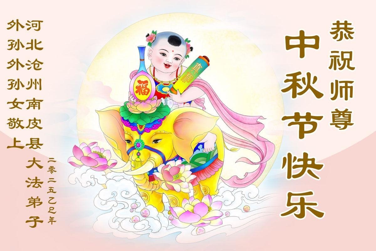 河北省滄州南皮縣大法弟子外孫、外孫女恭祝師父中秋節快樂!