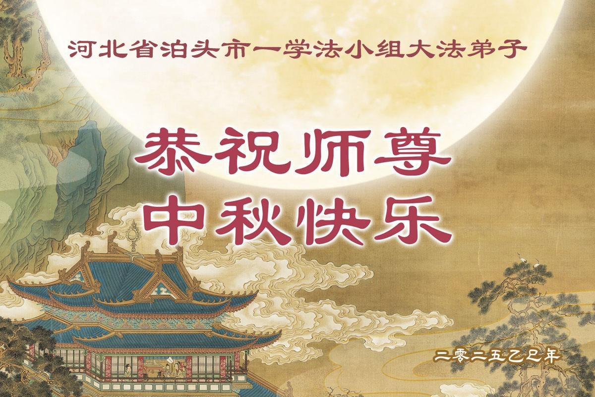 河北邢台大法弟子學法小組大法弟子恭祝師尊中秋快樂!