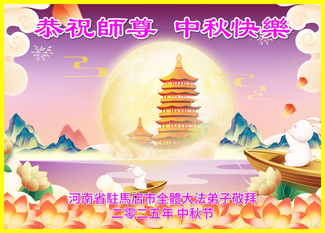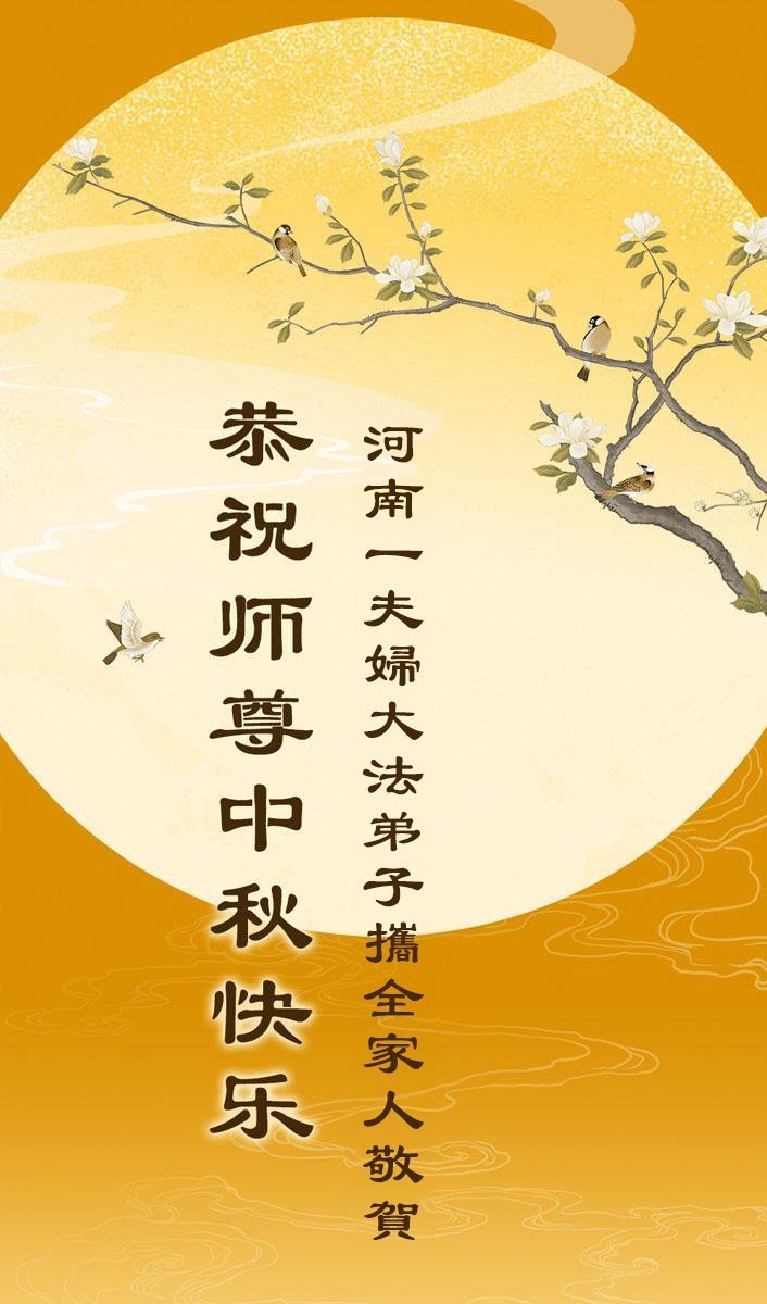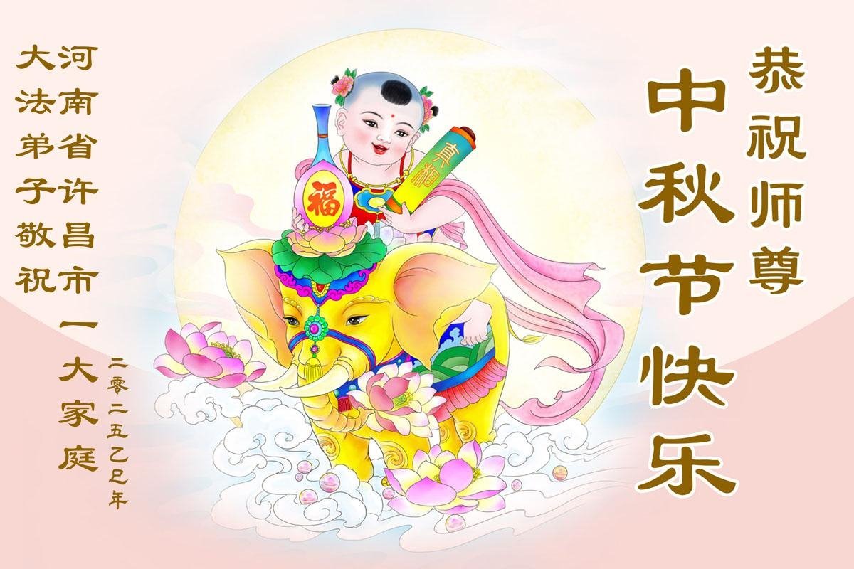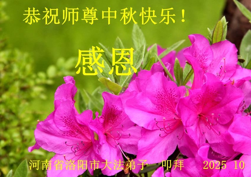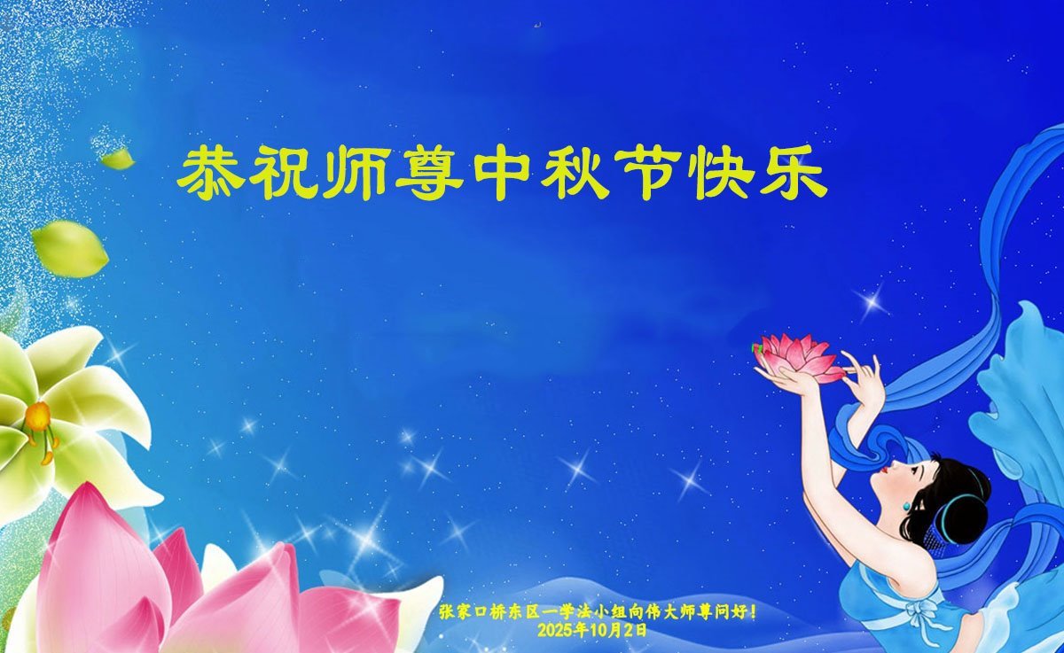 每逢佳節倍思親,千言萬語道不盡對師父的感恩!弟子感恩師父的慈悲救度與保護,雖然不能與師父相見,但是我們的心永遠與師父聯繫在一起。在最後的亂世亂象面前,在嚴肅的法難大考中,弟子更要堅如磐石,更要多學法,學好法,更加努力勇猛精進,更加理智清醒的維護師父、維護大法,救度更多的眾生。迎接師父早回到中原。