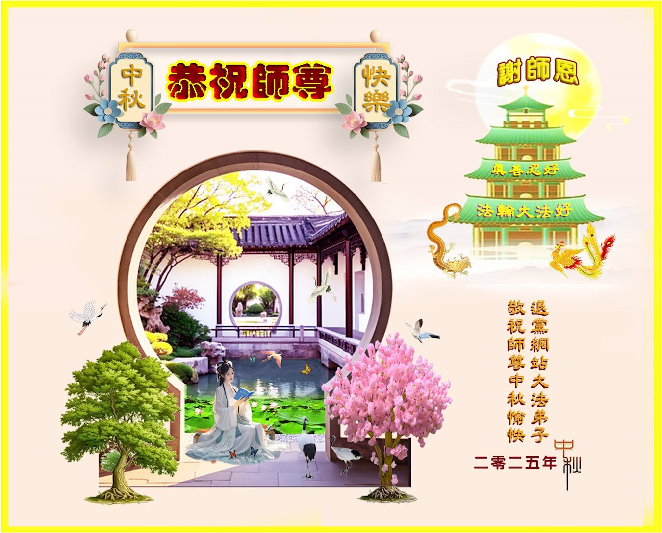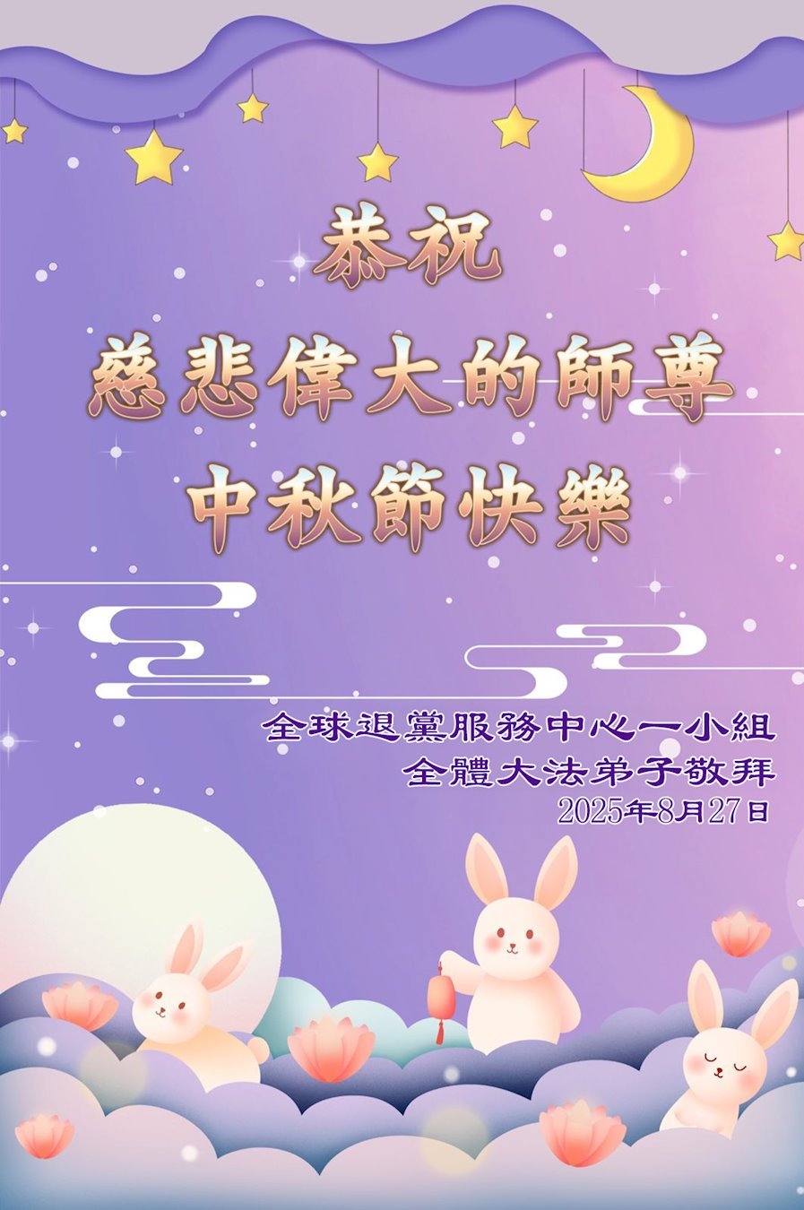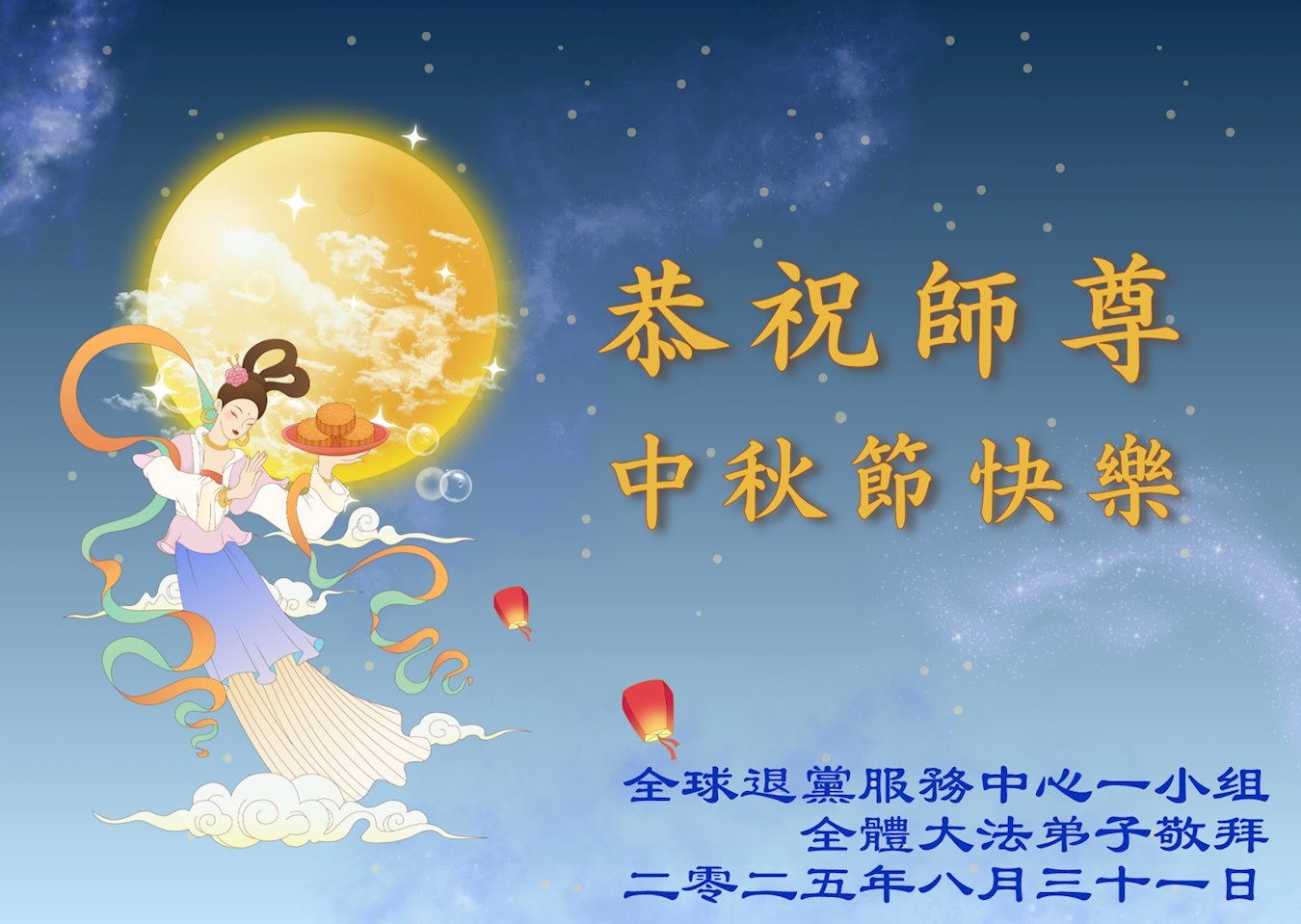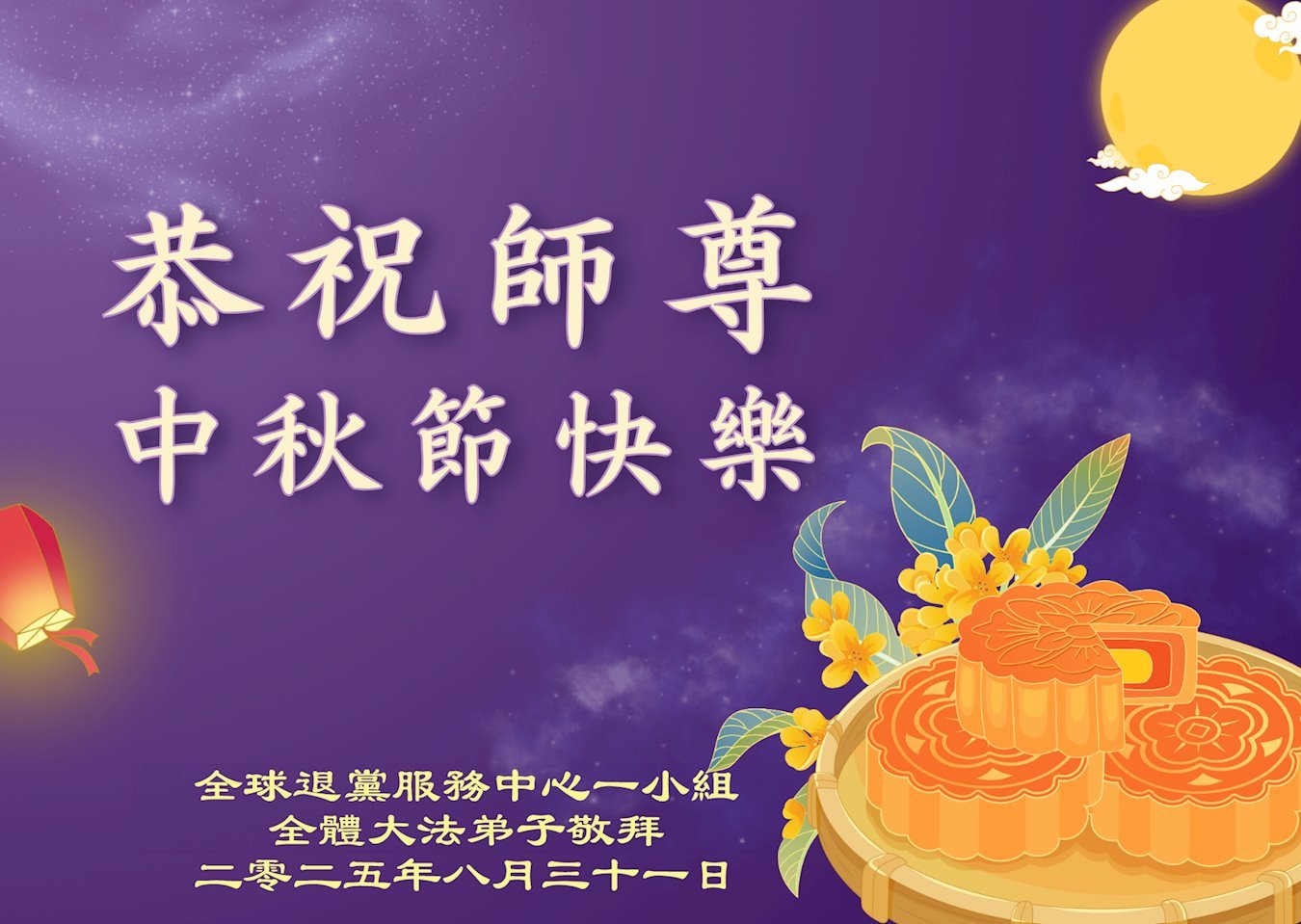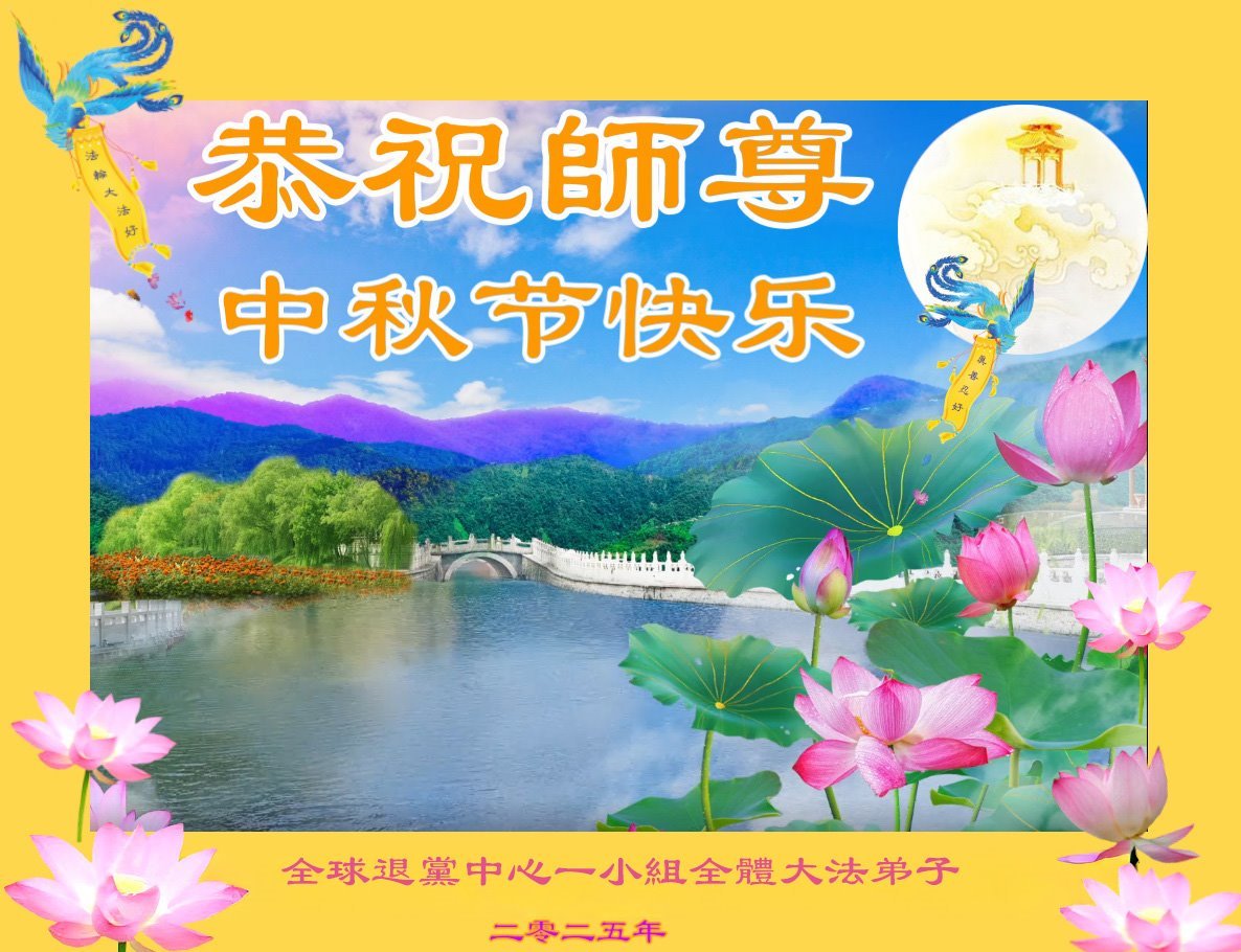 海外網絡講真相學法小組大法弟子恭祝慈悲偉大的師尊中秋快樂!