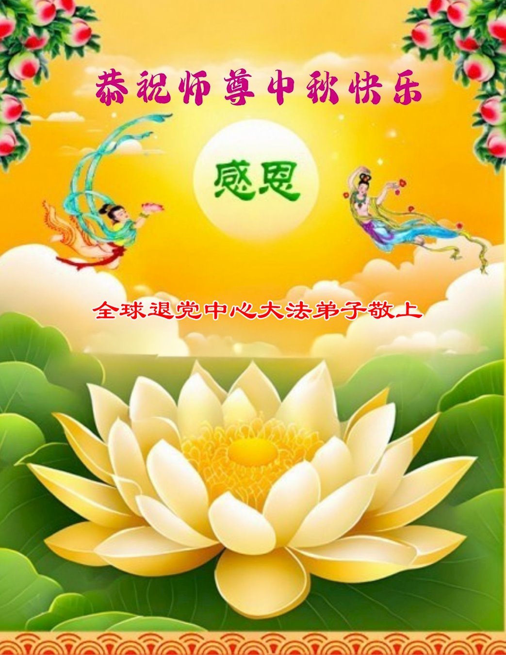 師尊您好, 師尊辛苦了! 在這中秋佳節來臨之際,恭祝慈悲偉大的師尊中秋節快樂!