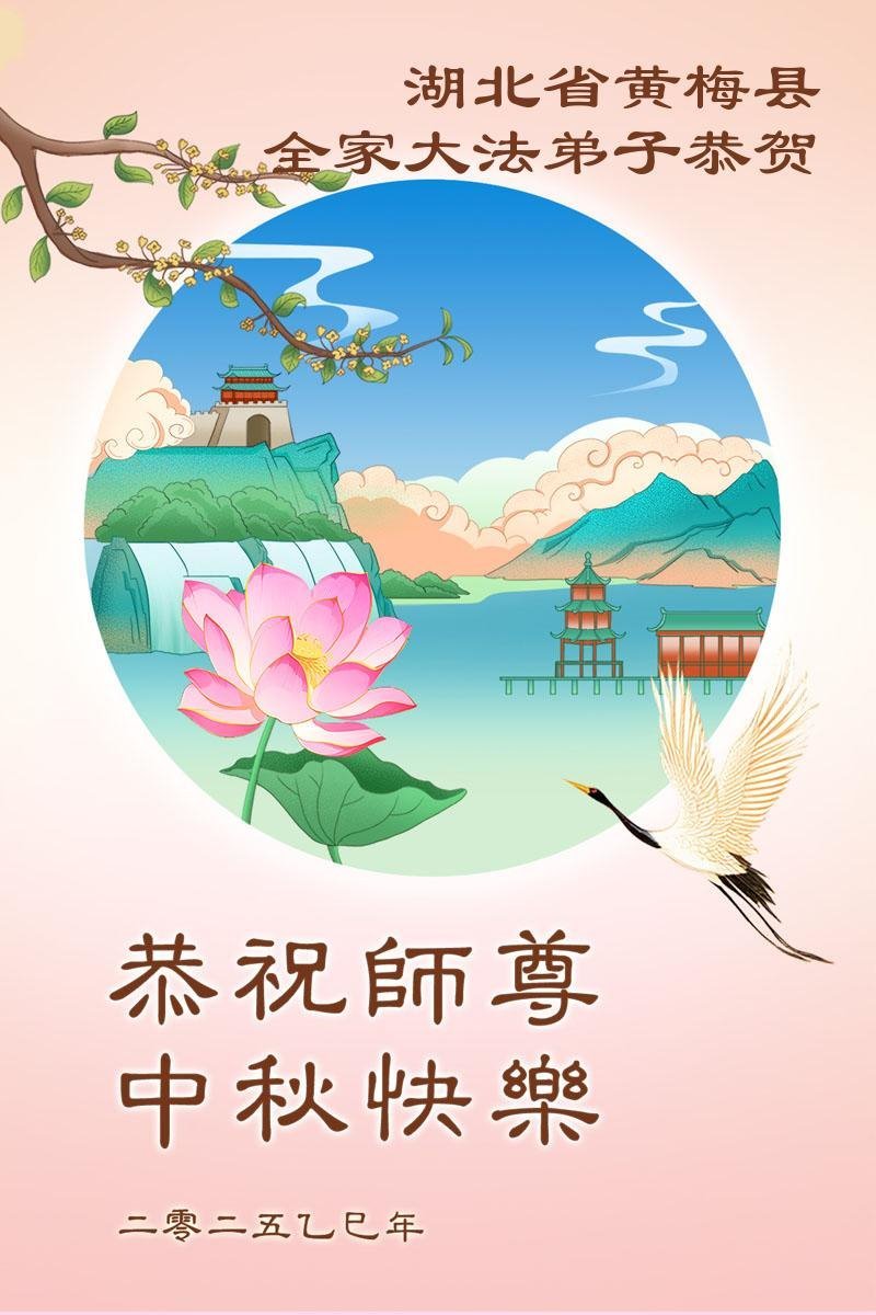 湖北省黃岡市黃梅縣全家大法弟子恭祝師尊中秋快樂!