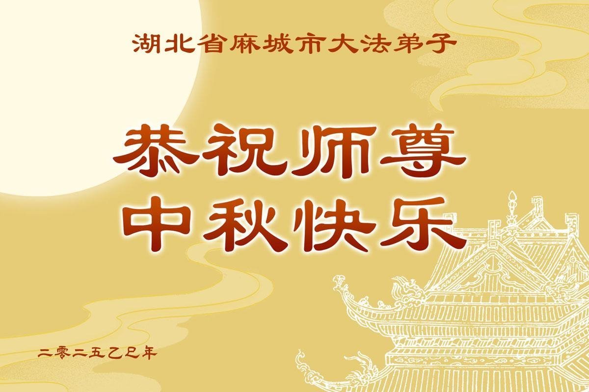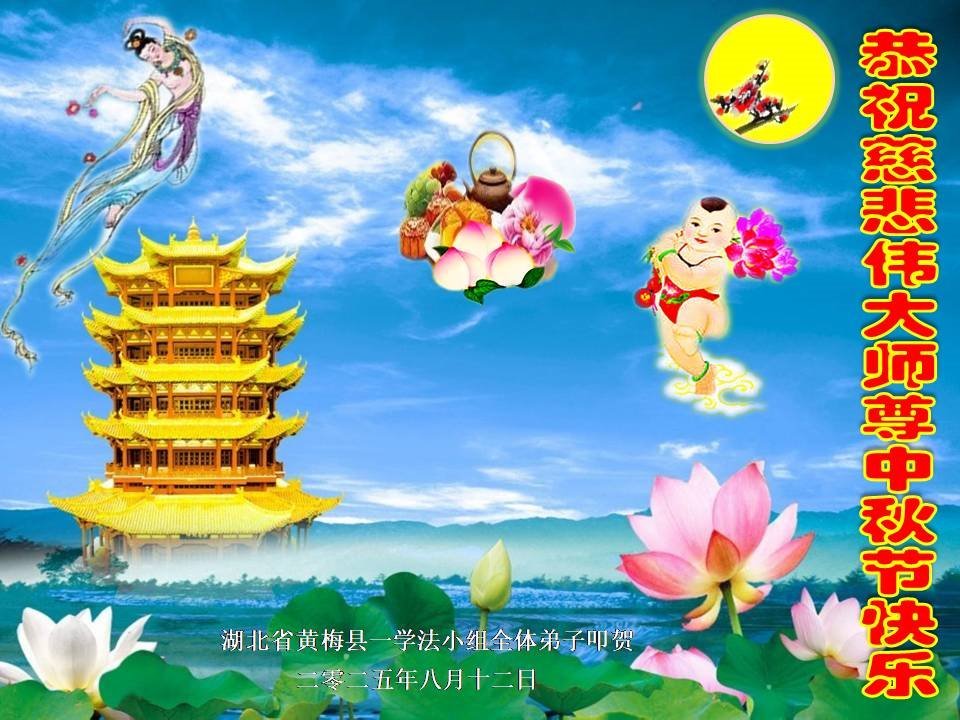 湖北省黃岡市黃梅縣一學法小組大法弟子恭祝慈悲偉大師尊中秋節快樂!