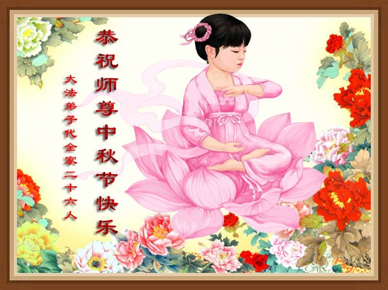 湖南湘潭縣一大法弟子全家恭祝師尊中秋節快樂!