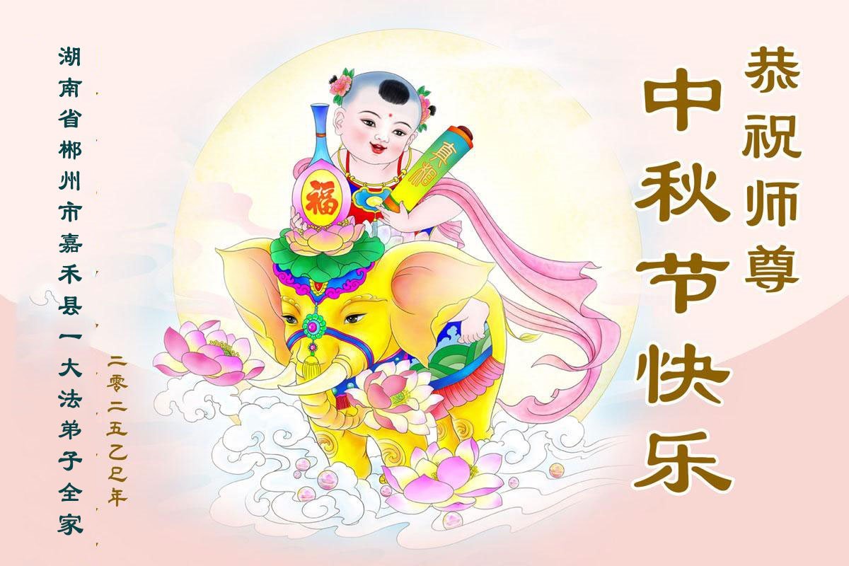湖南省郴州市嘉禾縣一大法弟子全家恭祝慈悲偉大的師尊中秋節快樂!