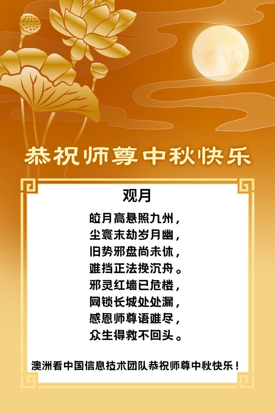 澳洲《看中國》信息技術團隊大法弟子恭祝師尊中秋快樂!