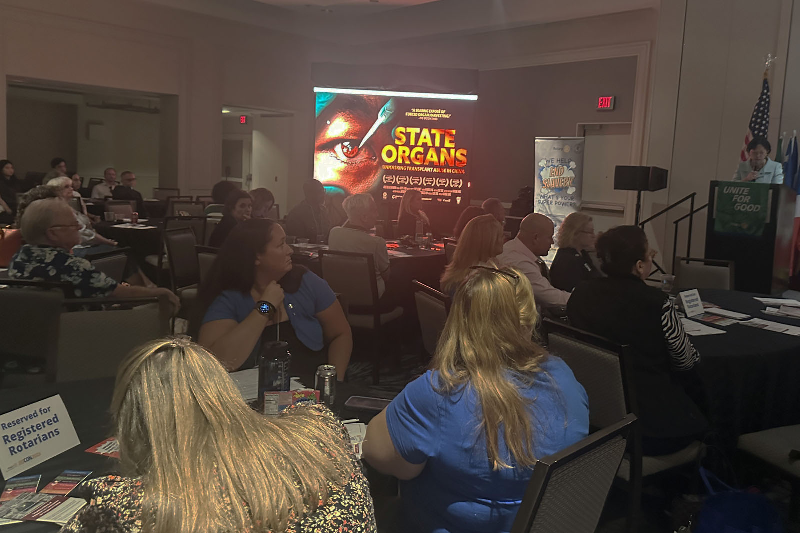 圖1:二零二五年十月三日晚,扶輪社在美國首都華盛頓位於白宮附近的威斯汀酒店宴會廳舉辦了《國有器官》放映會。