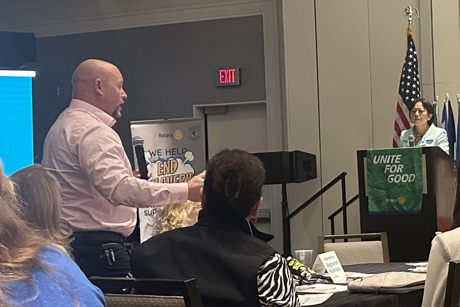 來自馬裏蘭州羅克韋爾扶輪社的漢德(Hande)和吉姆(Jim)觀看影片後,表示深受震撼。他們感謝扶輪社主辦這次「深具影響力的」活動。