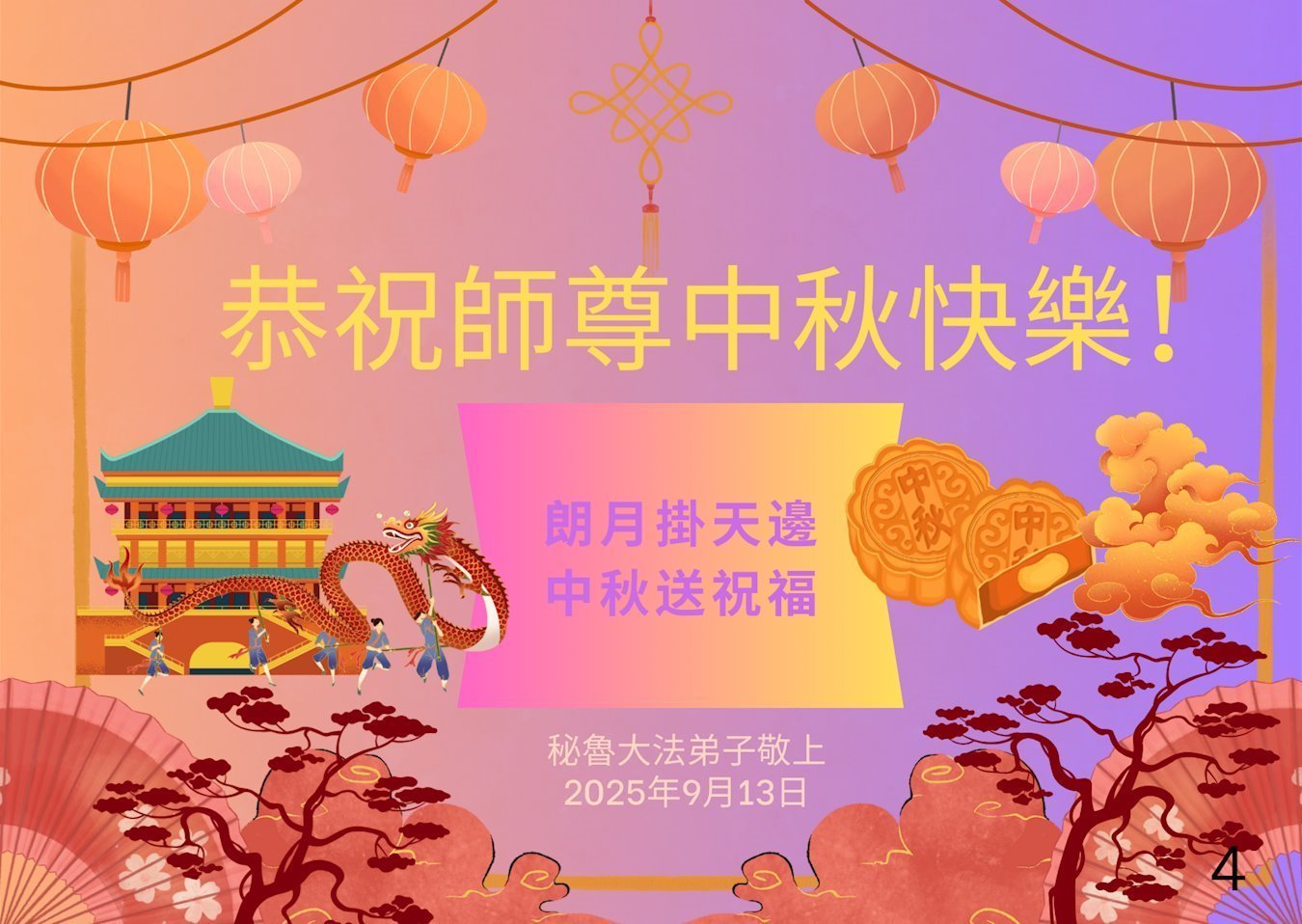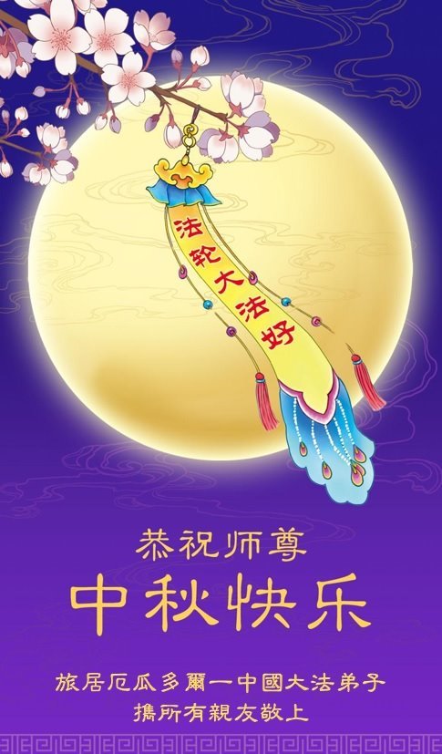 旅居厄瓜多爾一中國大法弟子及所有親友恭祝慈悲偉大的師尊中秋快樂!