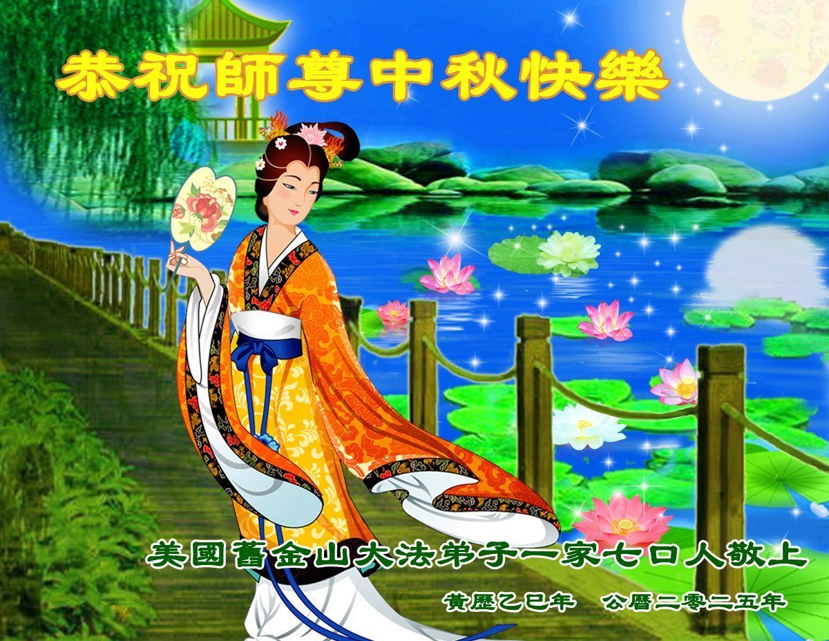 美國聖地亞哥一位大法弟子和全家人恭祝偉大師尊中秋節快樂!