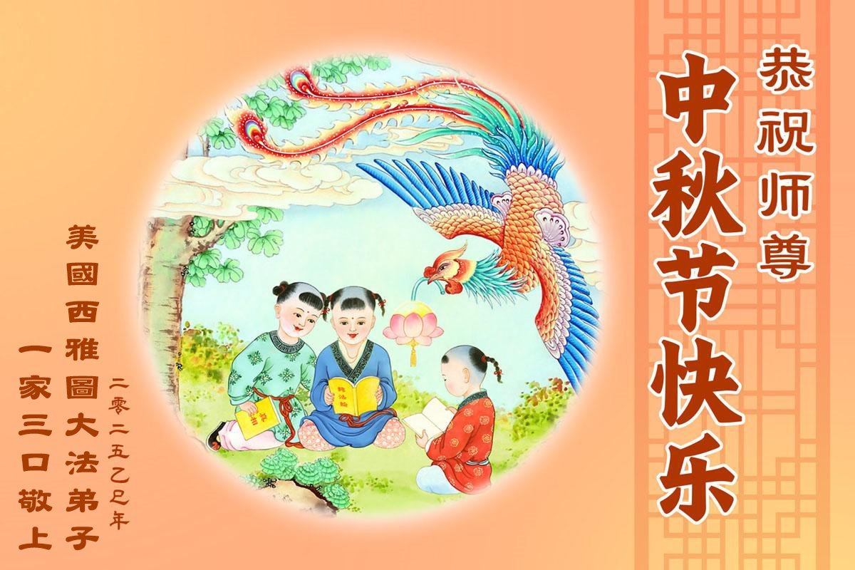 美國西雅圖一家三口大法弟子恭祝師尊中秋快樂!