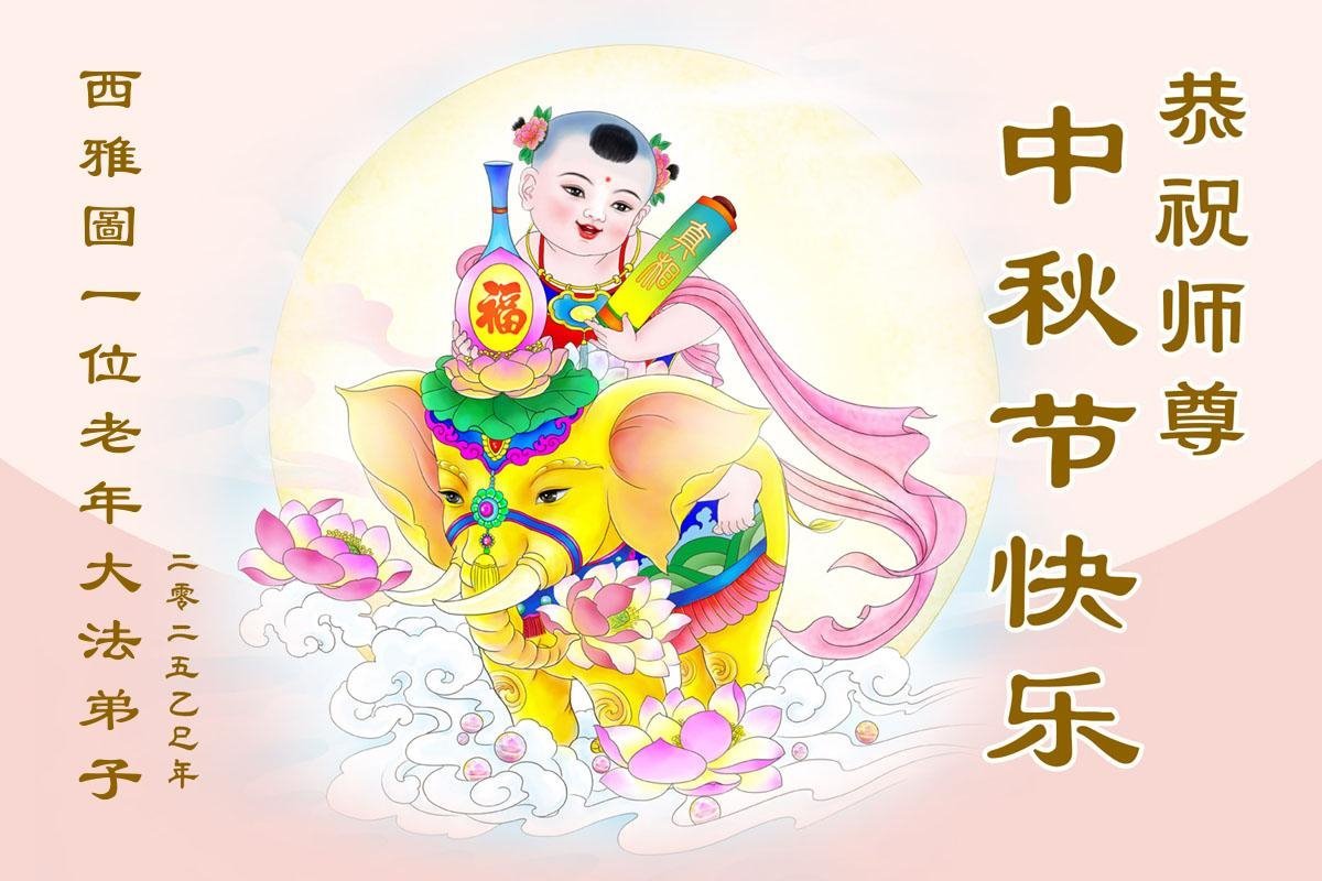 美國西雅圖一老年大法弟子恭祝師尊中秋快樂!