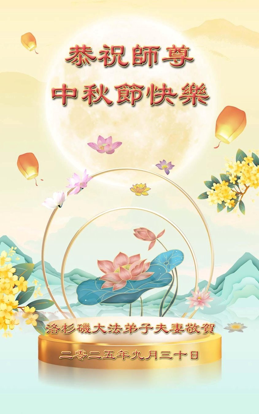 洛杉磯大法弟子恭祝師尊中秋節快樂!