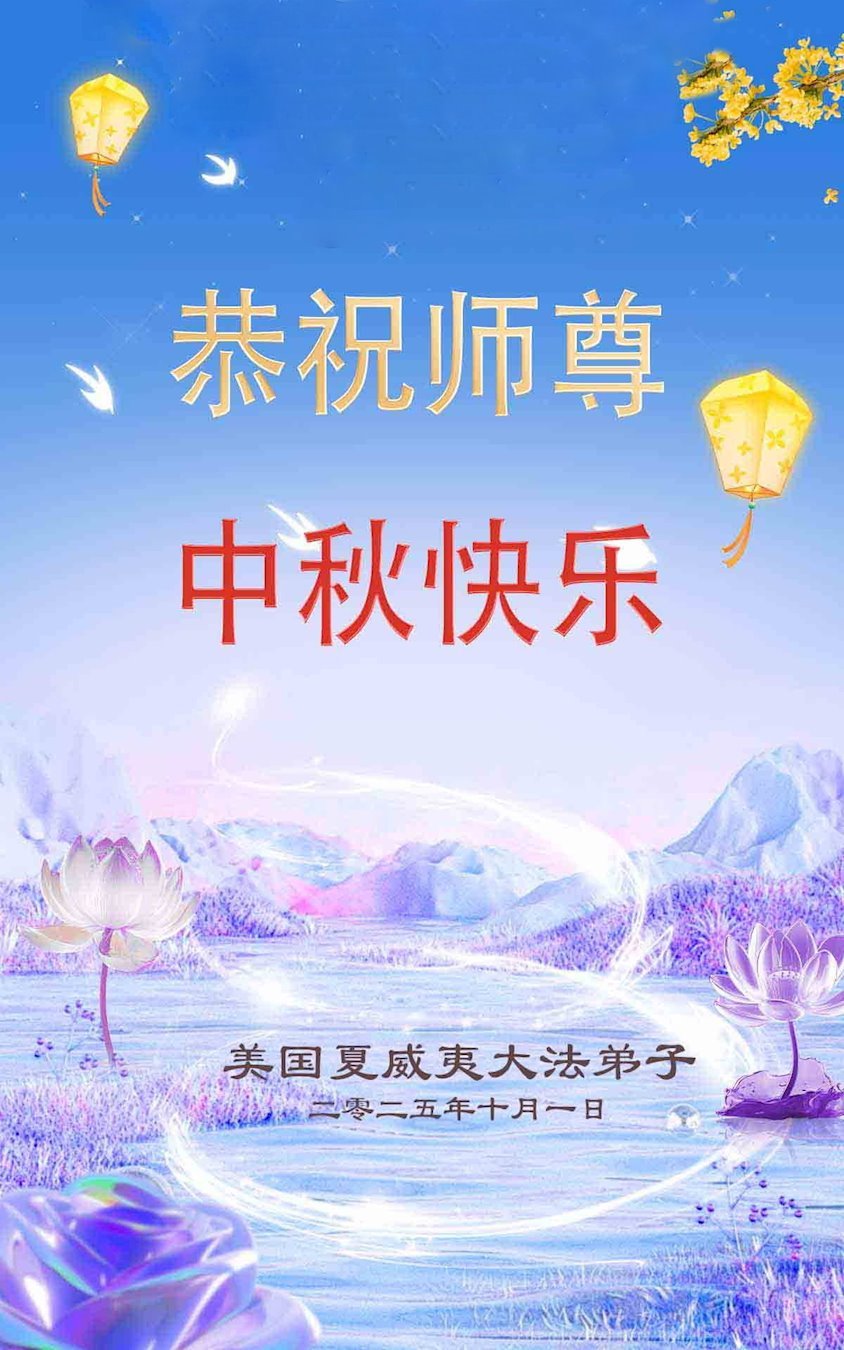弟子懷著無比感恩的心情恭祝慈悲偉大的師尊中秋節快樂!在這救人的關鍵時刻,弟子一定多學法,緊跟師父的正法進程,做好三件事,圓滿隨師還!