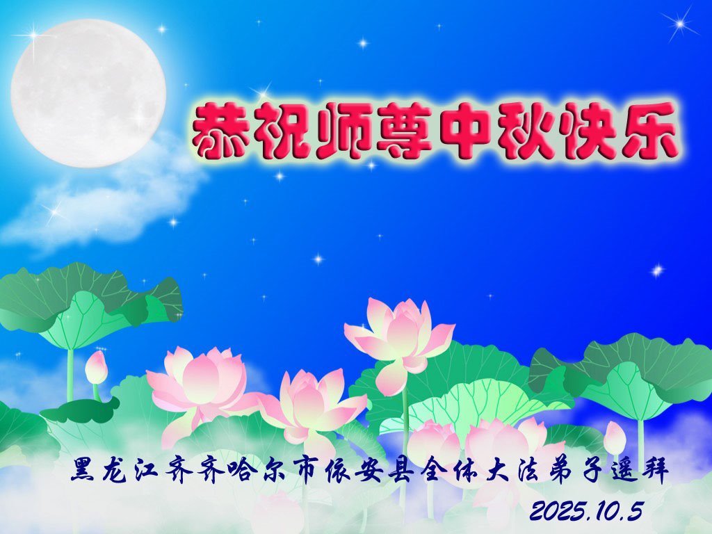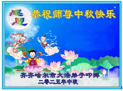 光陰似箭,日月如梭,又到了萬家團聚的中秋佳節,弟子們思念師尊!感恩師尊的慈悲救度!弟子們會牢記師尊的諄諄教誨,一如既往的走好走穩助師正法的路,學好法,互相幫助,整體提高,多救人,讓師尊多一份欣慰,少一份操勞。