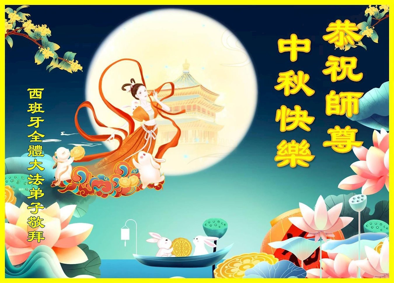 西班牙全體大法弟子恭祝慈悲偉大的師尊中秋快樂!