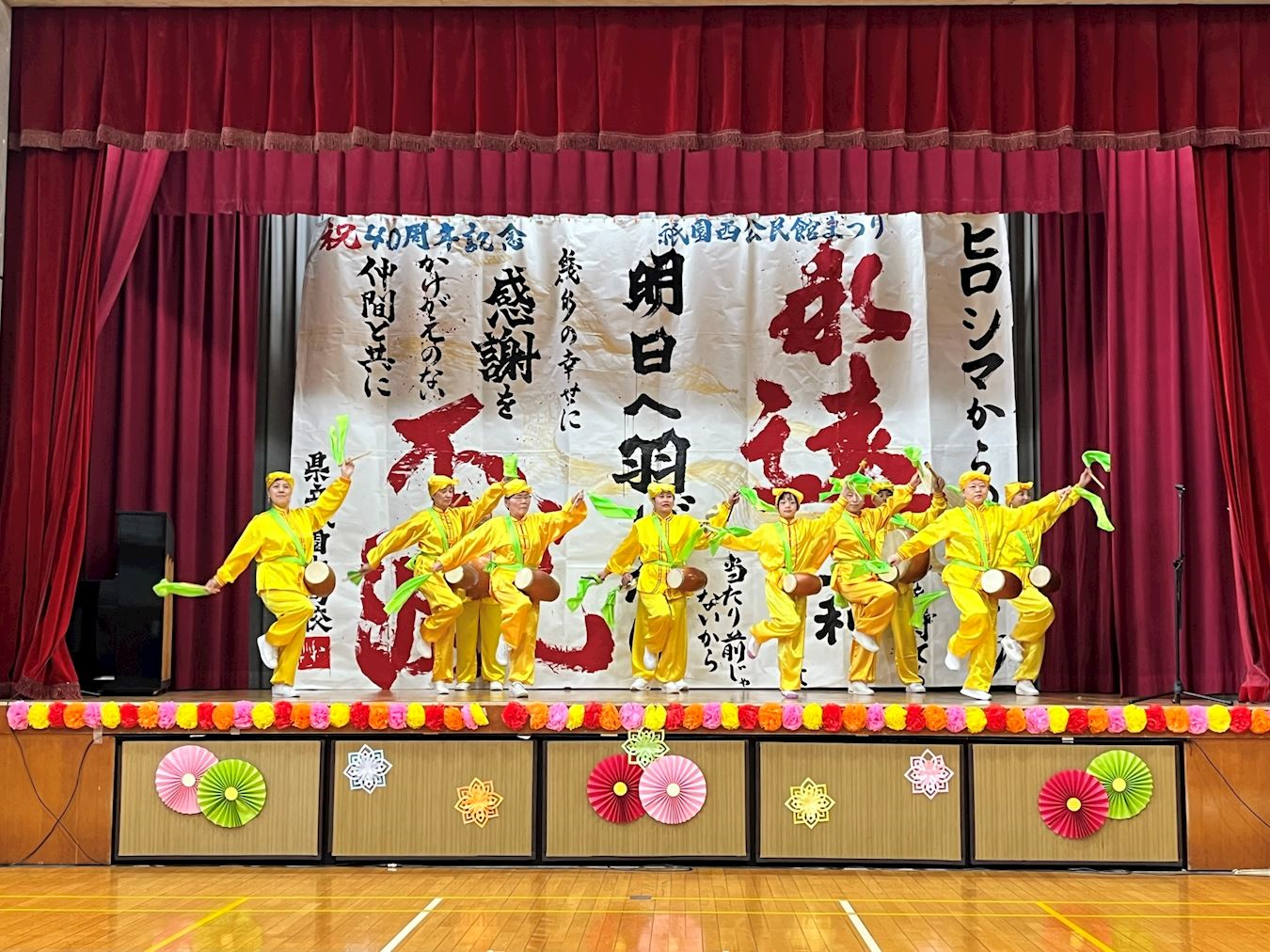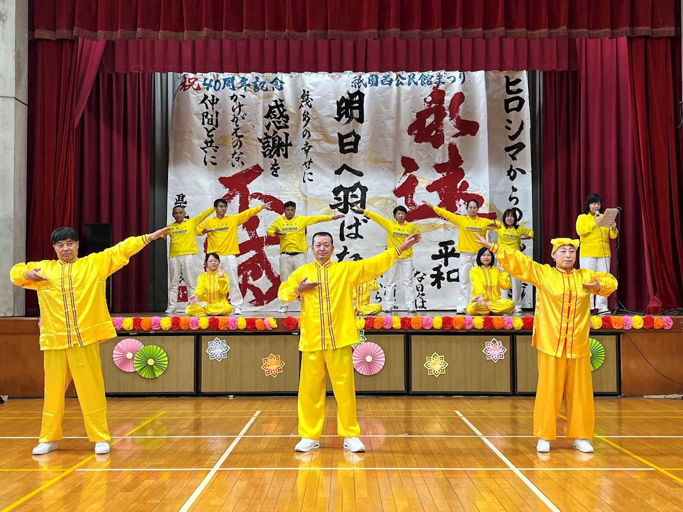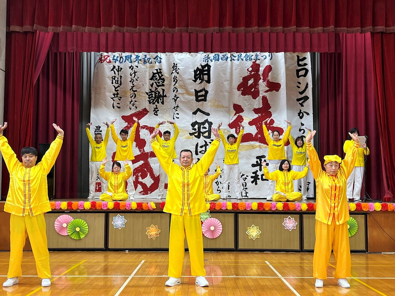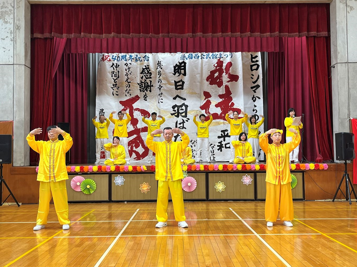 ![]() 圖1:二零二五年十一月九日,法輪功學員參加祇園西公民館慶典,在舞台表演腰鼓舞 |