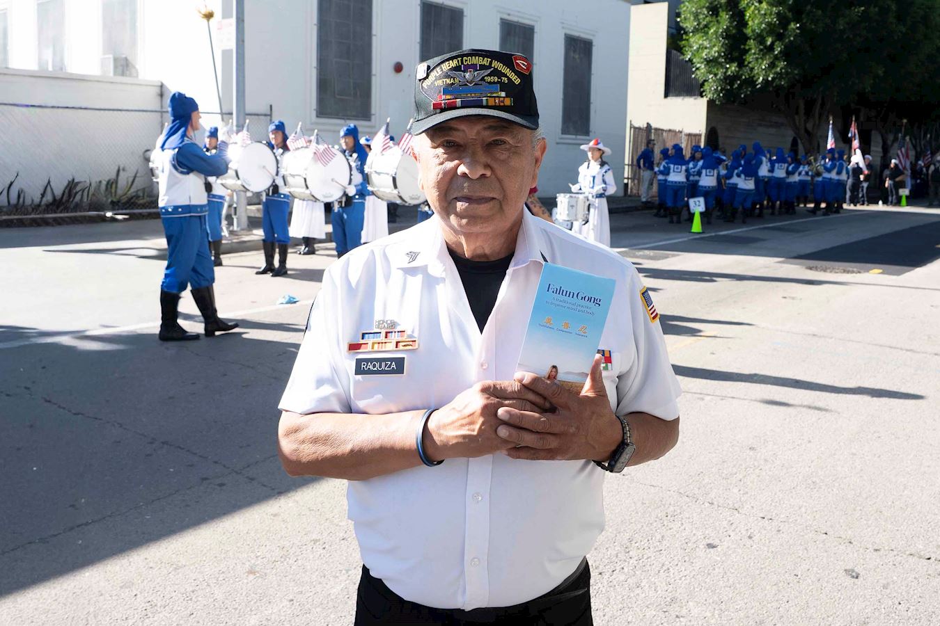 越戰老兵邁克﹒拉奎紮(Mike Raquiza)非常讚賞天國樂團的演奏,並好奇他們是哪裏來的,他說:「天國樂團的演奏非常棒,他們演奏的樂曲很吸引人。真、善、忍的原則很好,如果人們遵循這個原則,就會成為好公民。我認為真、善、忍至關重要。」