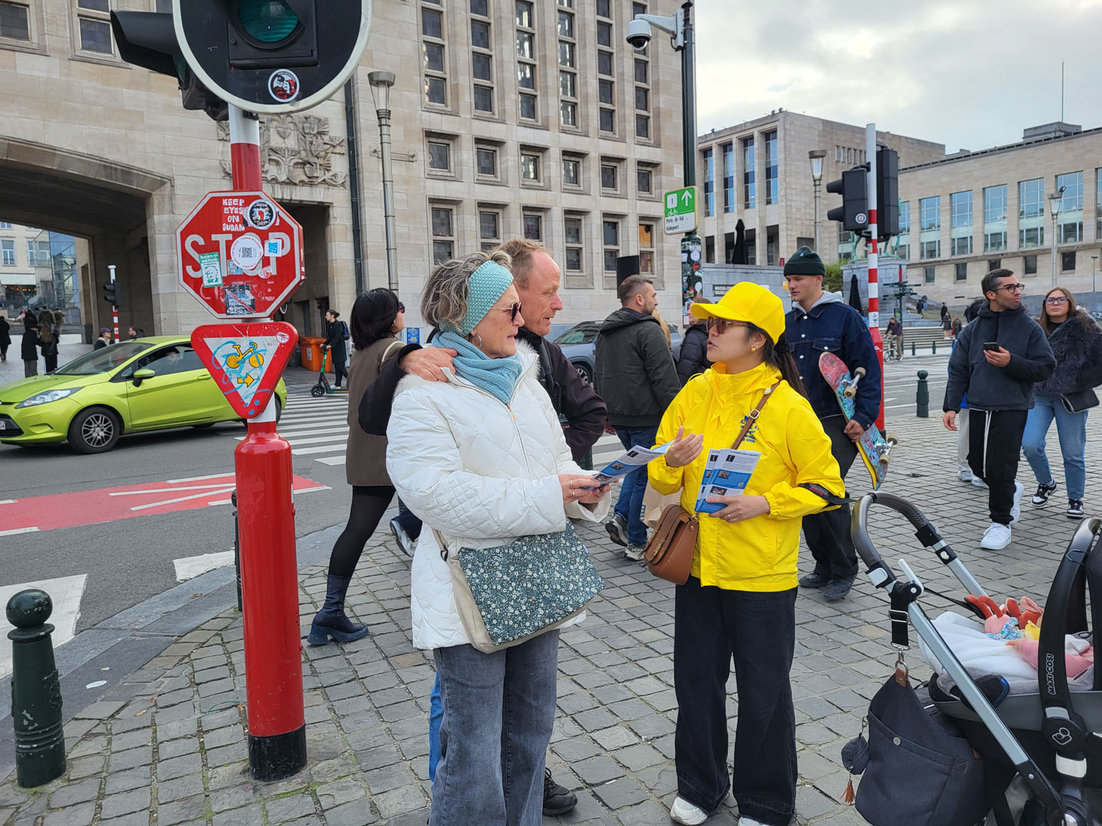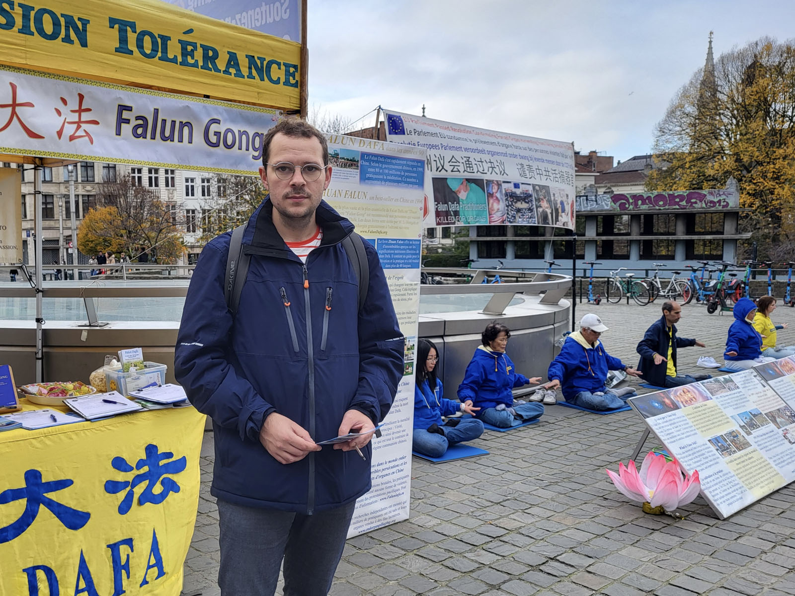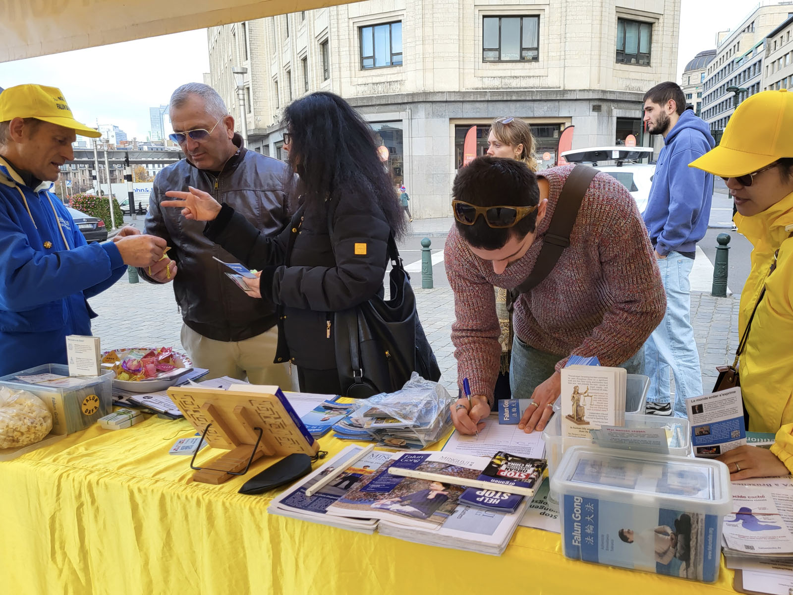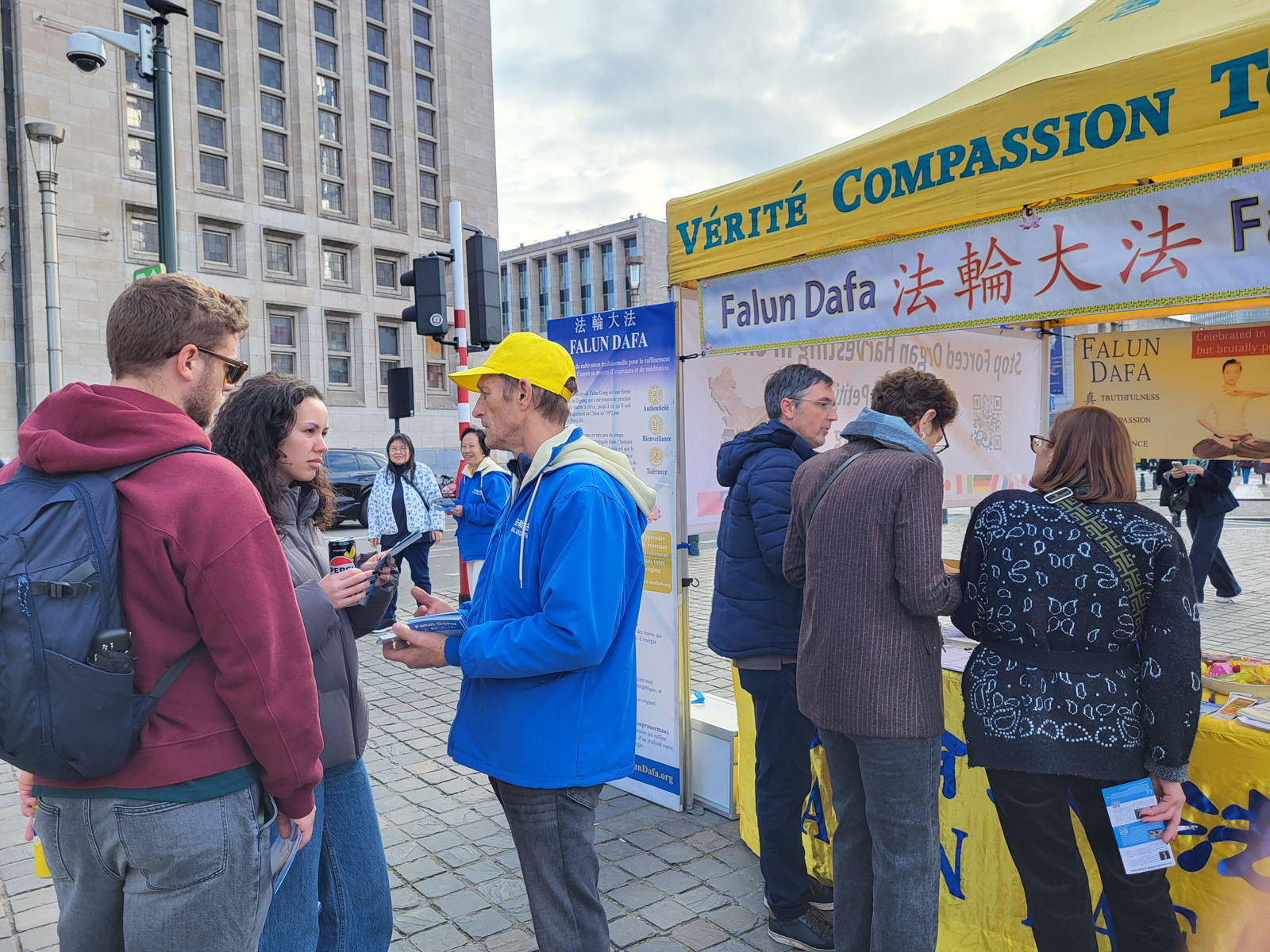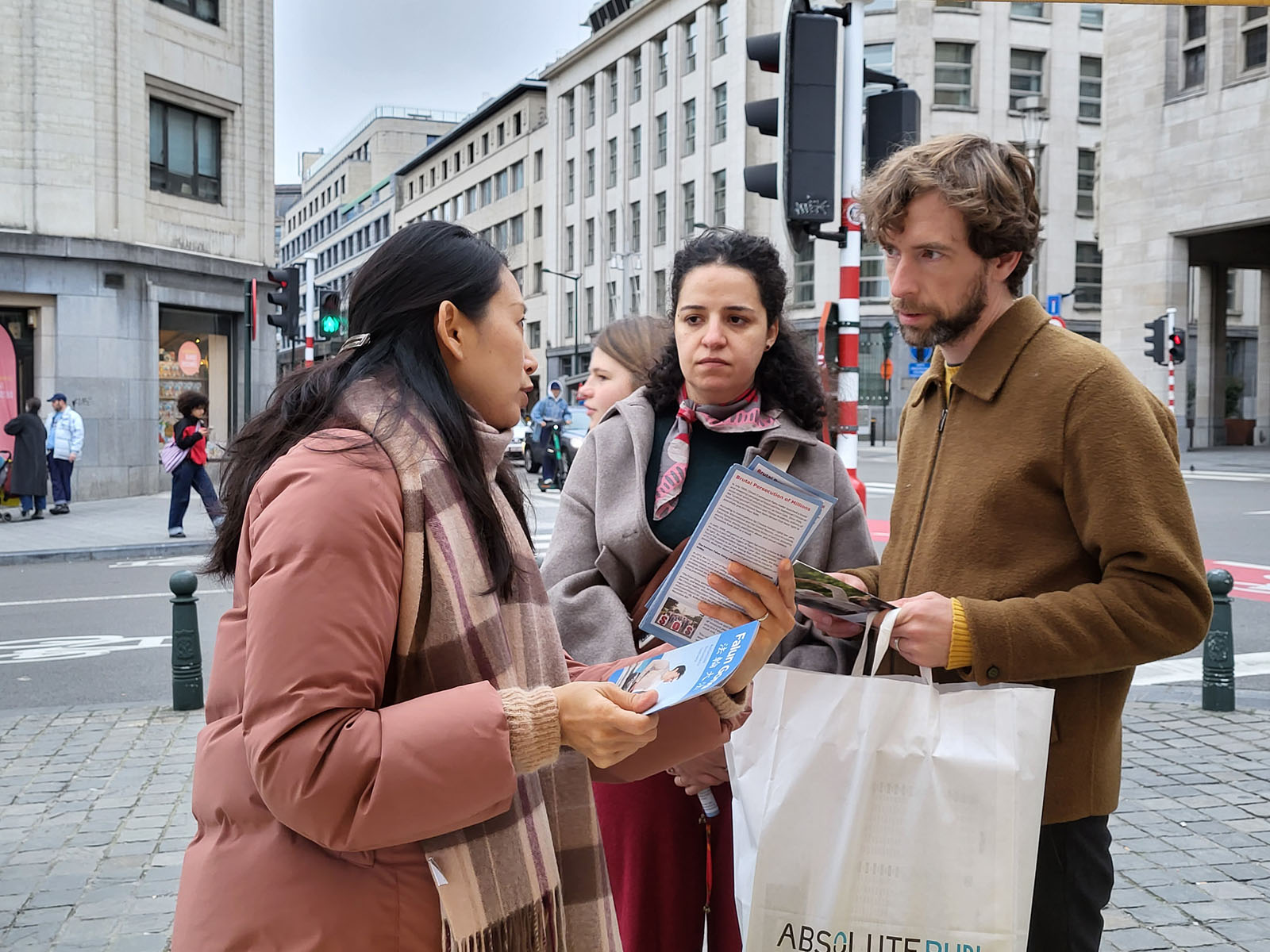 在法國文化與國際交流協會工作的瑪琳(Marine)與學員交談許久。她非常希望了解法輪功及發生的迫害。她和朋友週末來比利時度假,他們第一次得知這場迫害,當讀了橫幅和展板上寫的中共迫害法輪功的訊息,瑪琳覺得自己應該做點甚麼,哪怕只是簽名支持。她說,讓更多的人來了解發生的迫害是非常重要,「我的工作關係我希望了解更多的訊息,能讓更多的人來參與反迫害簽名。」