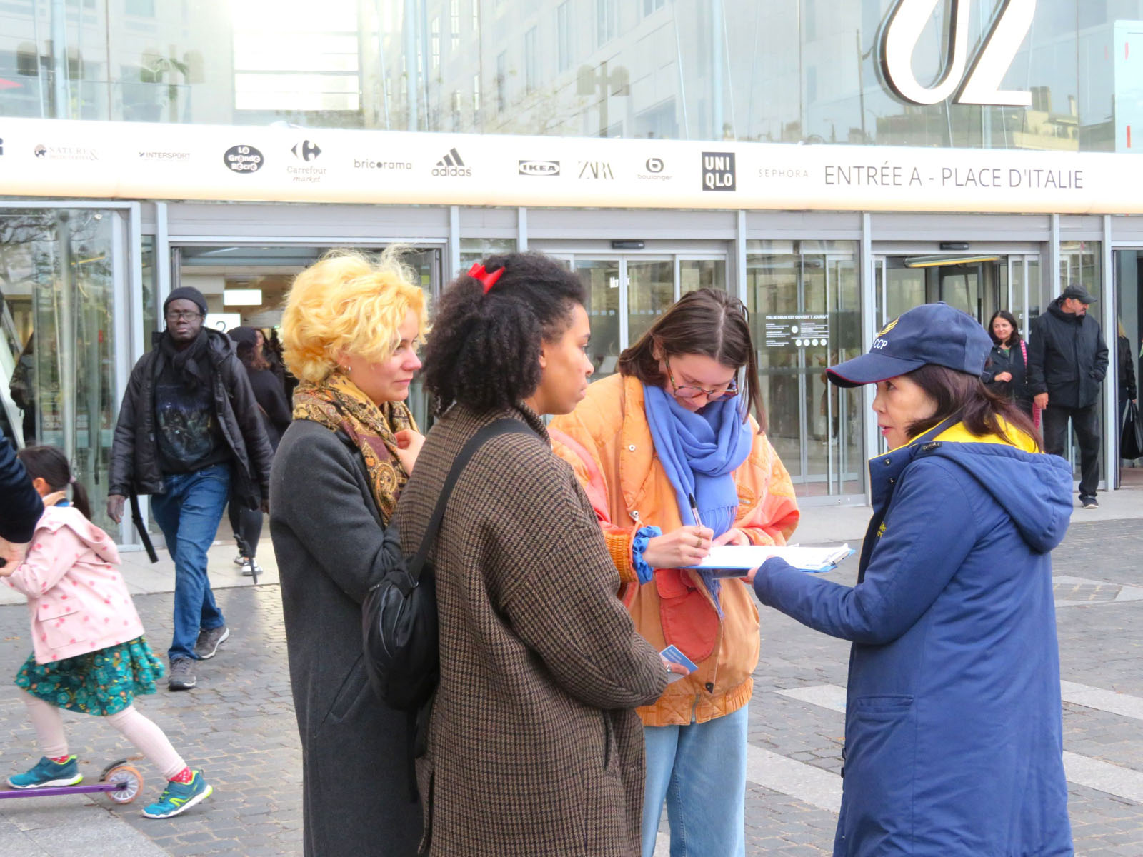 十一月八日星期六下午,在巴黎意大利廣場,法輪功學員像往常一樣,向民眾介紹法輪功及中共迫害法輪功的真相。很多民眾簽名支持法輪功反迫害。還有一些人想學煉法輪功,詢問巴黎煉功點的地址。