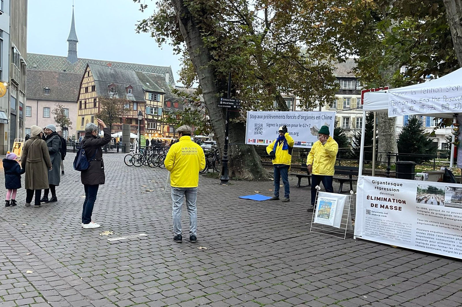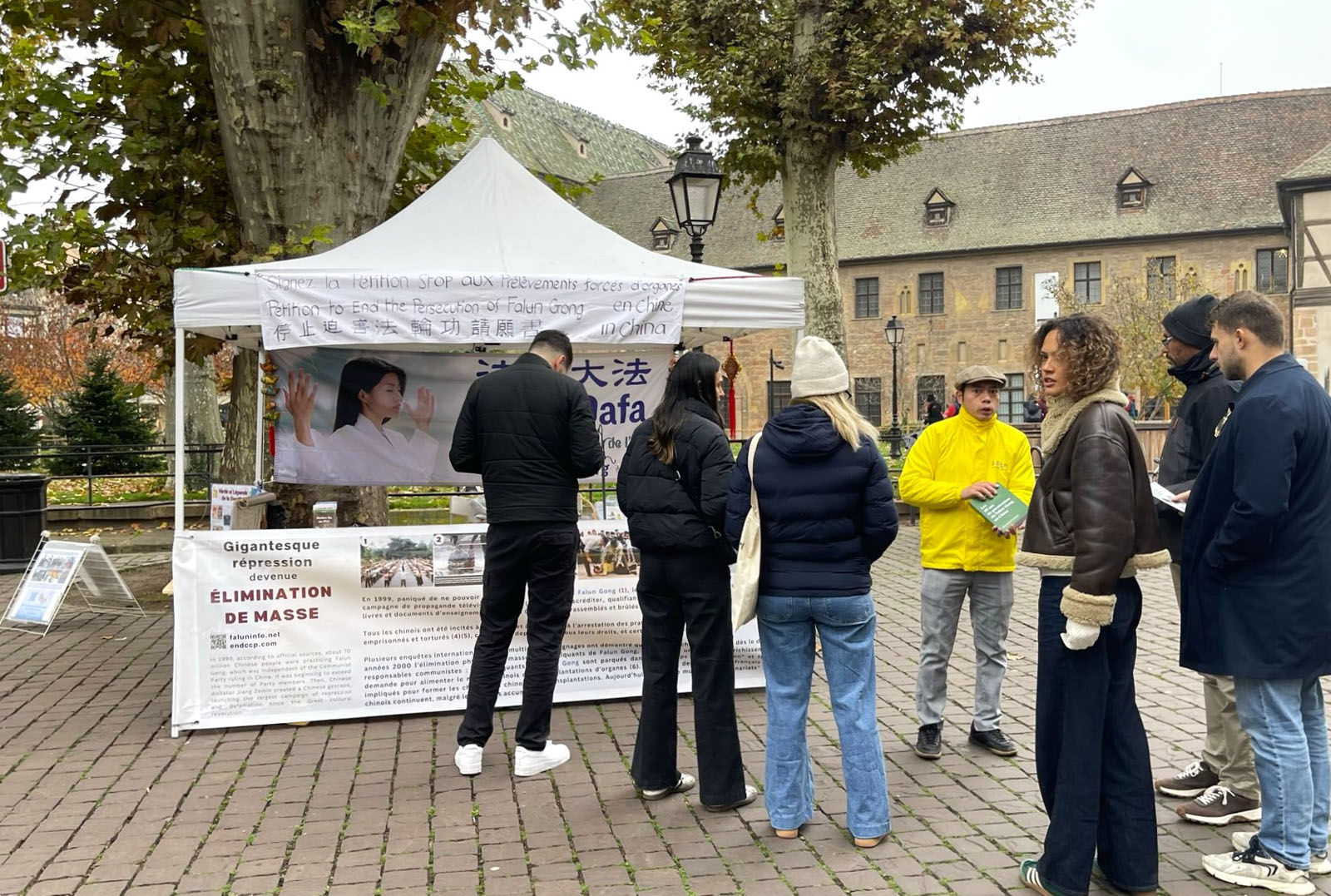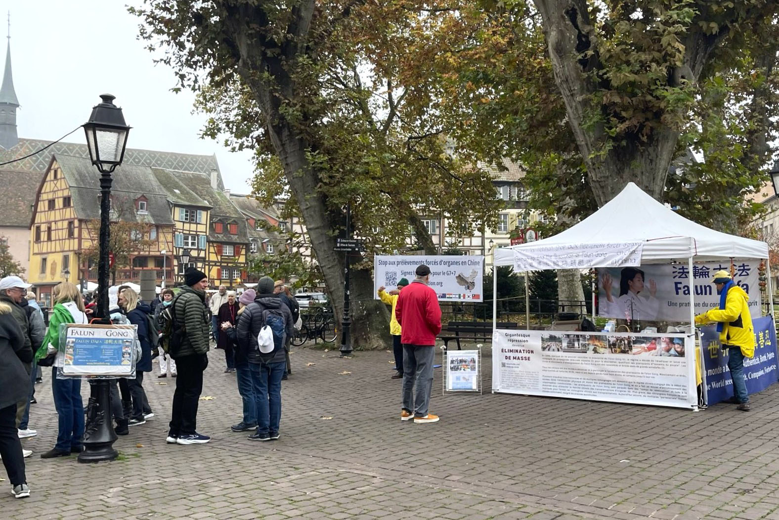 十一月八日星期六,法國東部地區法輪功學員在科爾馬(Colmar)市中心的講真相活動,吸引了當地的居民和來自世界各地的遊客。很多人前來了解法輪功,對修煉法輪功表現出極大的熱情。許多人簽署了請願書,要求結束與器官販賣相關的迫害。