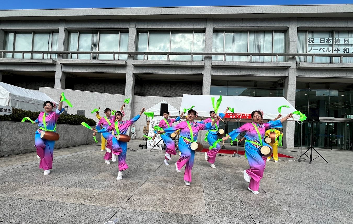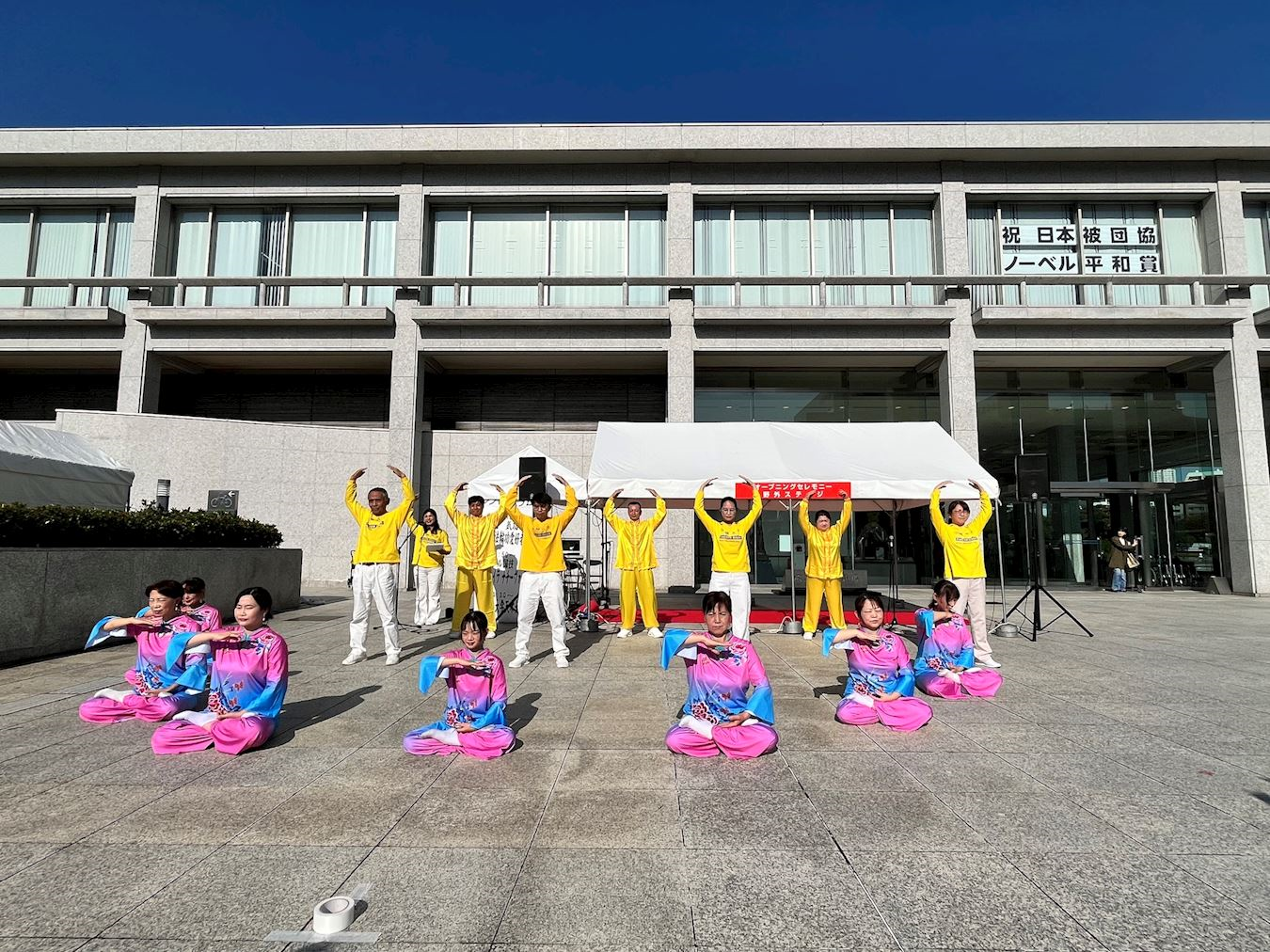 ![]() 圖1:十一月十五日、廣島法輪功學員參加「都市建設市民交流慶典」,舞台表演腰鼓舞 |