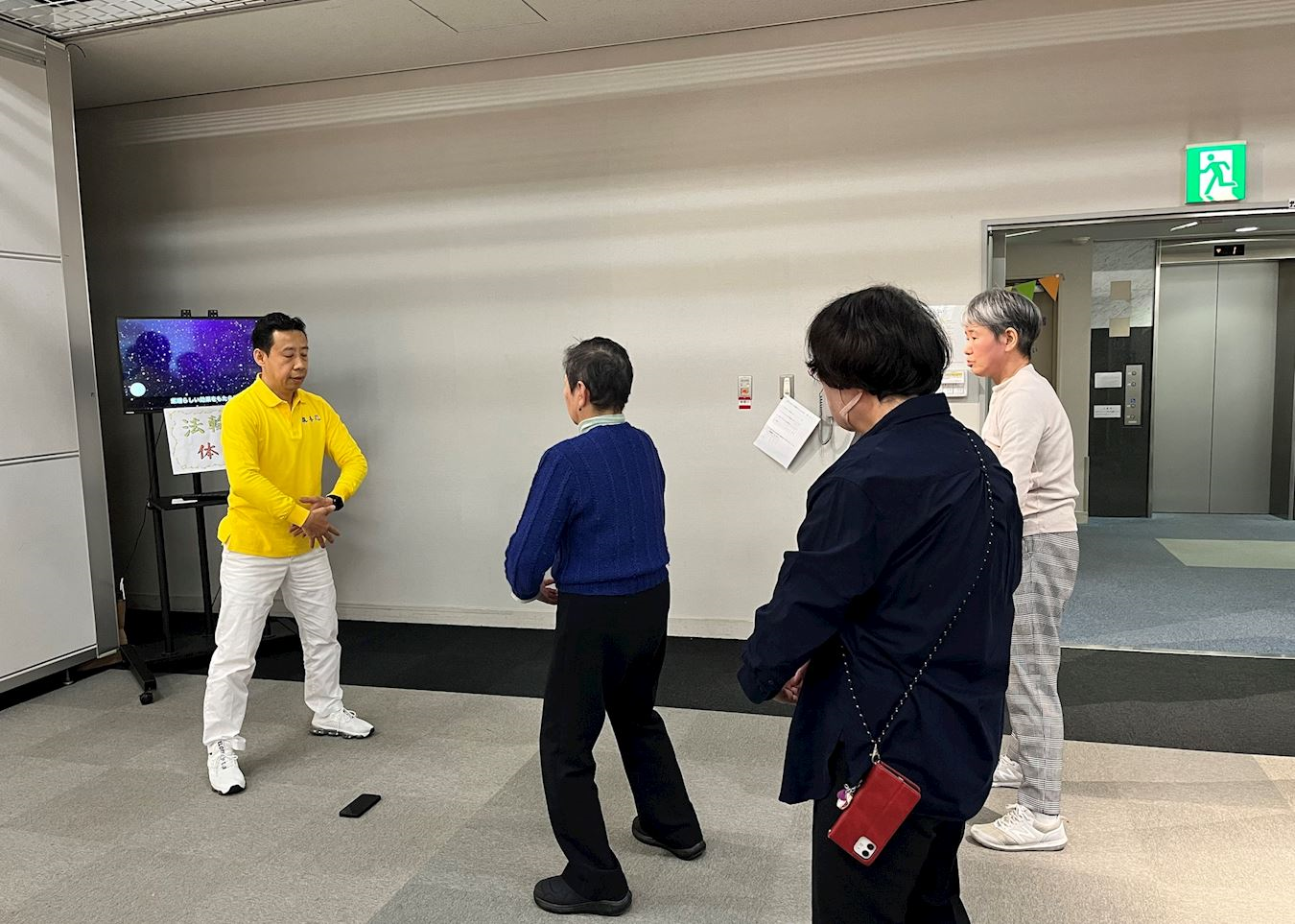 木村(Kimura)女士和五反田(Gotanda)女士學煉之後也感到全身發熱。她們打算介紹給各自的朋友,然後帶朋友一起到和平公園煉功點學功,因此,也特意多拿了幾份資料。