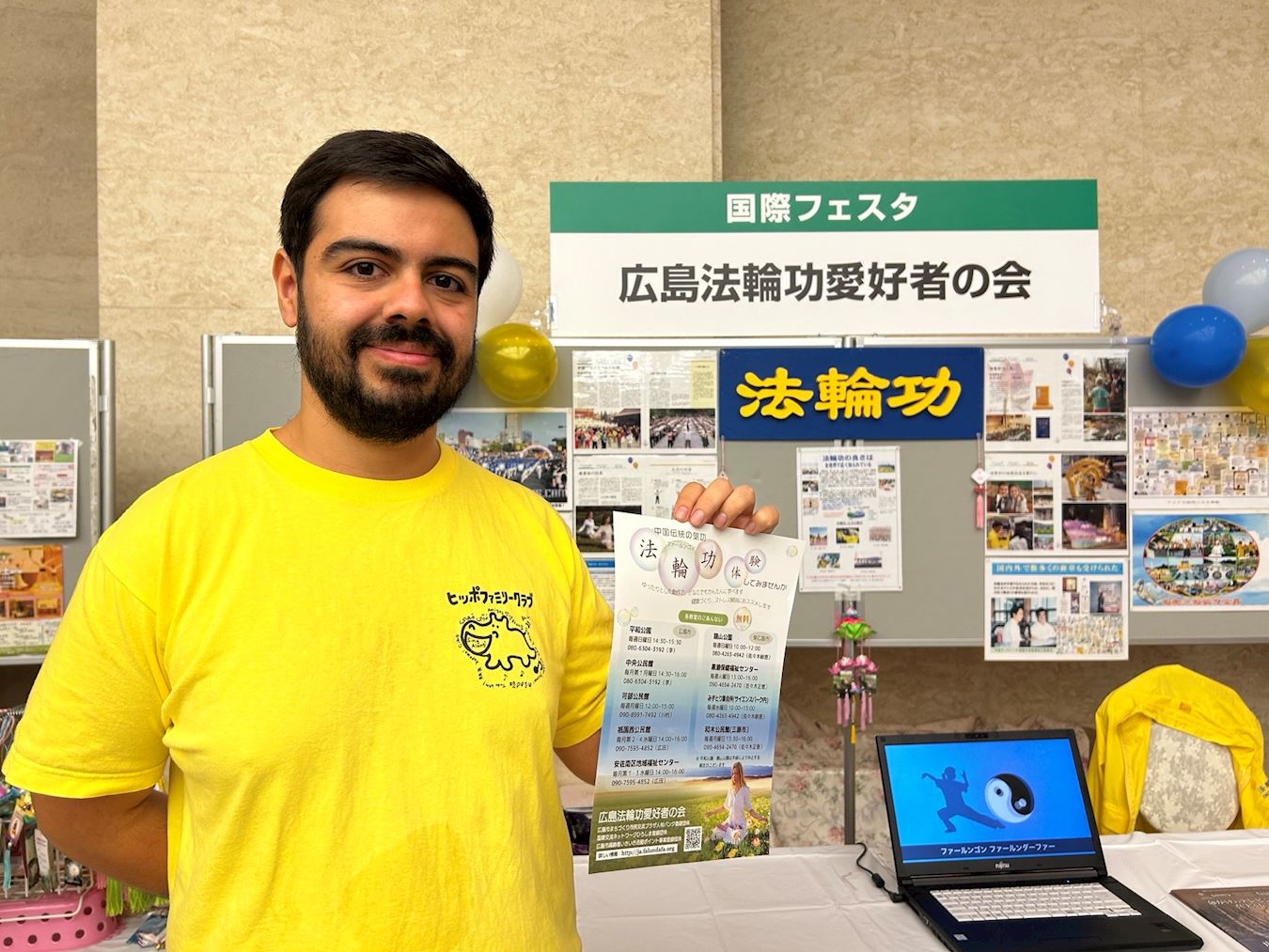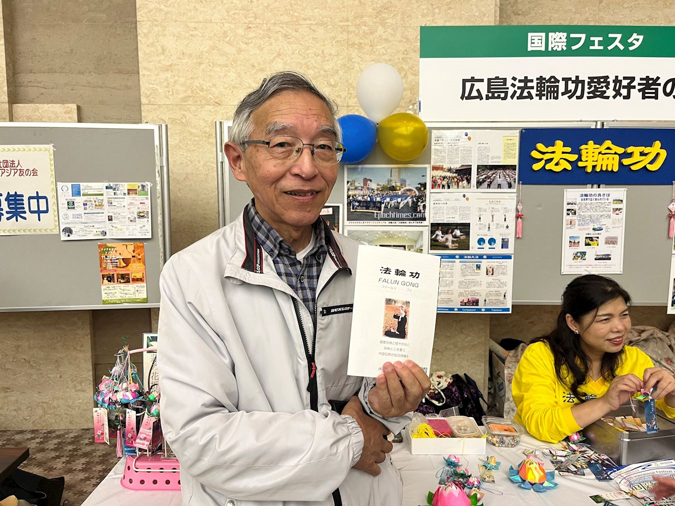剛剛觀看完法輪功學員舞台演出的吉田(Yoshida)先生,匆匆來到展位前用中文說:「太精彩了。」他詳細詢問教功點信息。他說:「希望中國人都有行動的自由、言論的自由,而不是敢怒不敢言或被無端的批判。中國要成為日本這樣的可以自由發聲的社會就好了。」