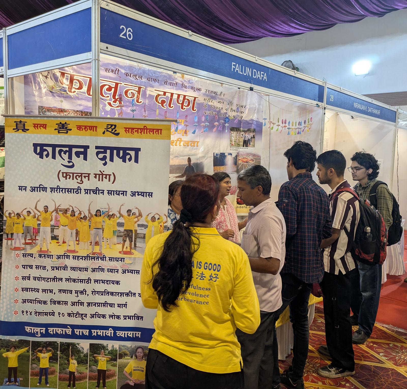十位來自浦那的法輪功學員參加了書展,並在書展上設立了專門展位,介紹法輪大法。同時,學員們也向參觀者徵集 「反強摘器官醫生組織」的請願書簽名,許多參觀者在了解到中共強摘器官的真相後都非常震驚,並積極支持這一請願行動。